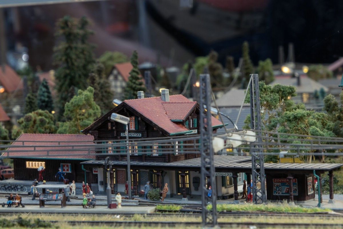 Bilder von den Anlagen Hans Müller: alles sehr schön gebaut mit abgewandelten Vorbildern wie z.B. der Höllental-Bahn oder auch Biel in der Schweiz. Leider sind ihm beim Transport an der großen Anlage ein paar Drähte abgerissen, so dass auf dieser Anlage (mit Oberleitung) nur ein Zug fahren konnte.