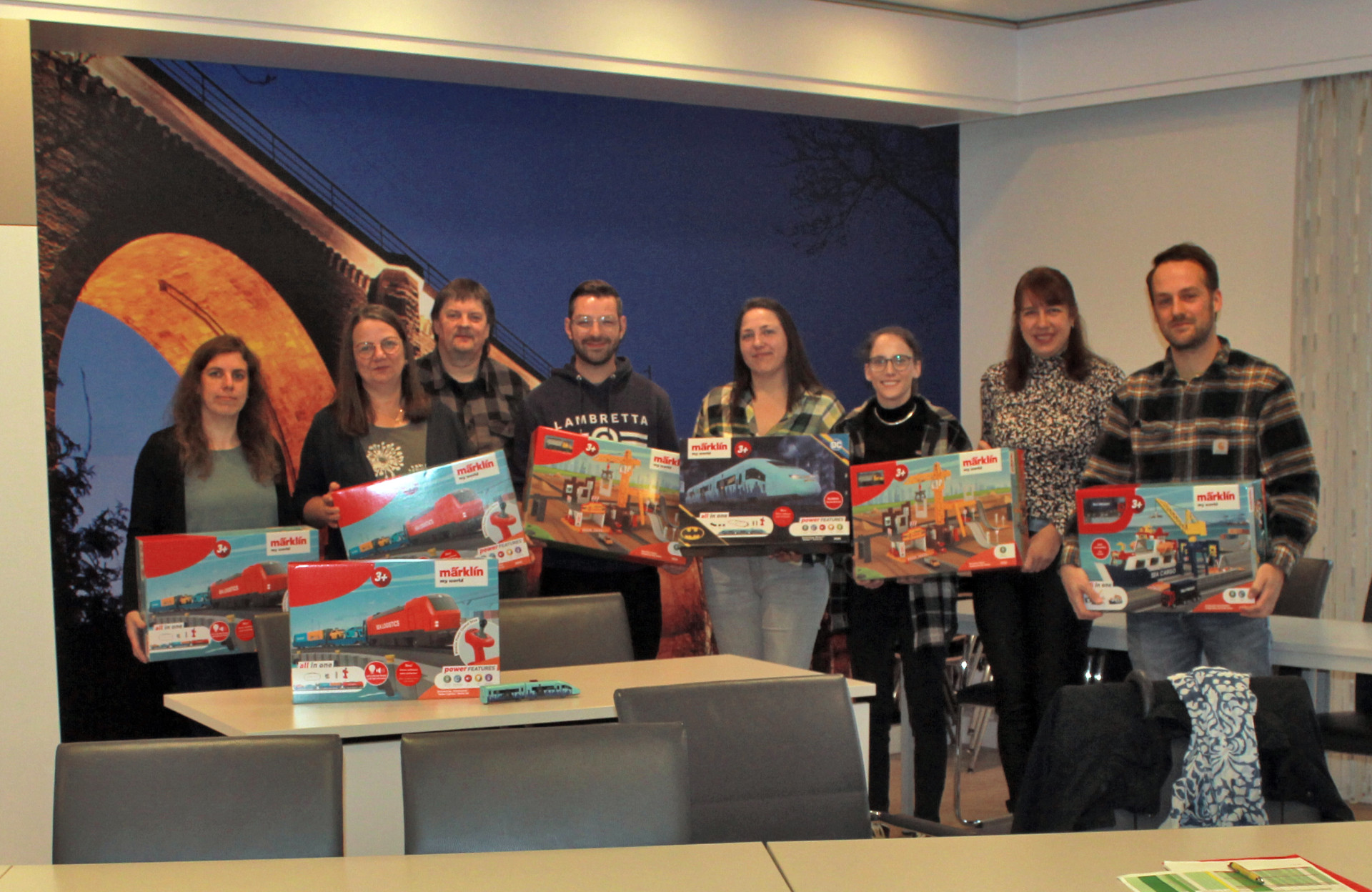 Gestern wurden im Rahmen unserer Spendenaktion die Märklin My-World- Eisenbahnen an die Kindergärten der Gemeinde Altenbeken übergeben. Nachdem sich die Terminfindung etwas zäh gestaltete (Sommerferien etc.), ergab sich ein Termin im Rathaus, wo Frau Spitzenberg von der Gemeinde Altenbeken alle Kindergärtner zusammenbekam.