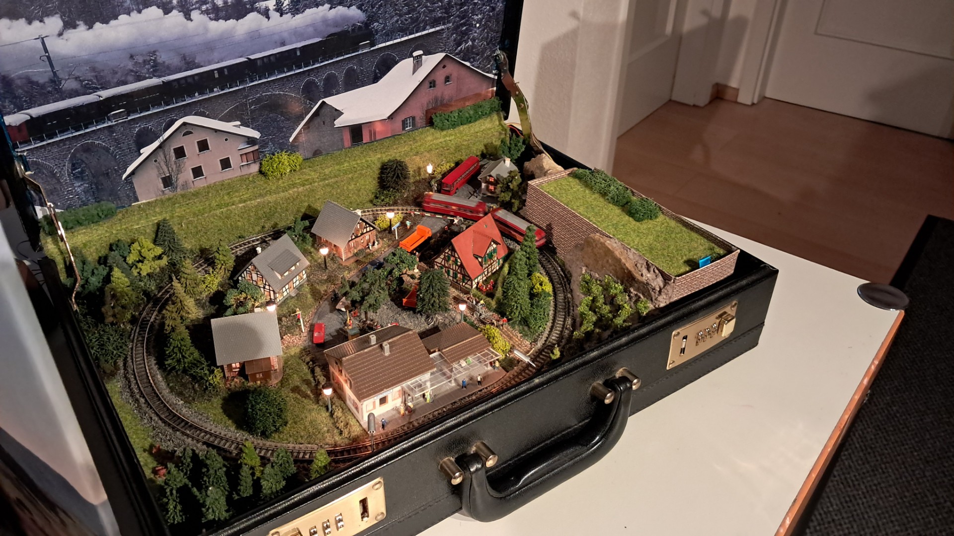 In der kleinen feinen Ausstellung gab es Volker's mittlerweile recht große Brettchenanlage sowie ein paar andere kleine Schätze zu sehen, außerdem noch die H0-Modulanlage des veranstaltenden Vereins.