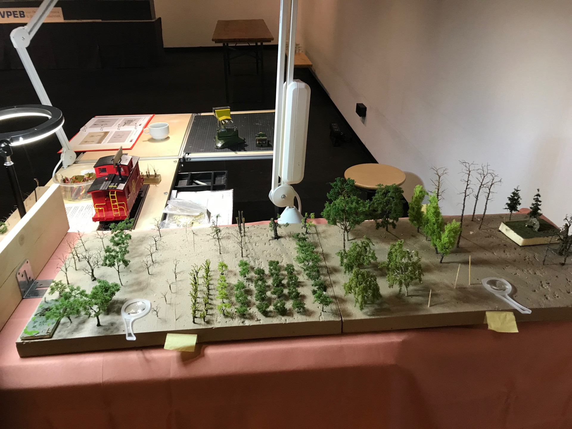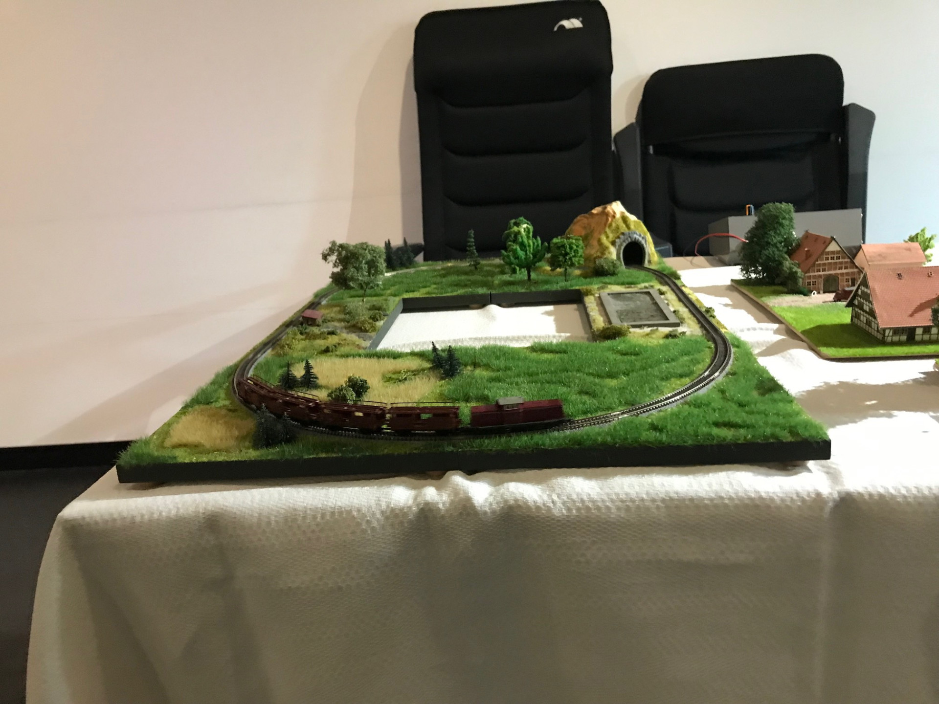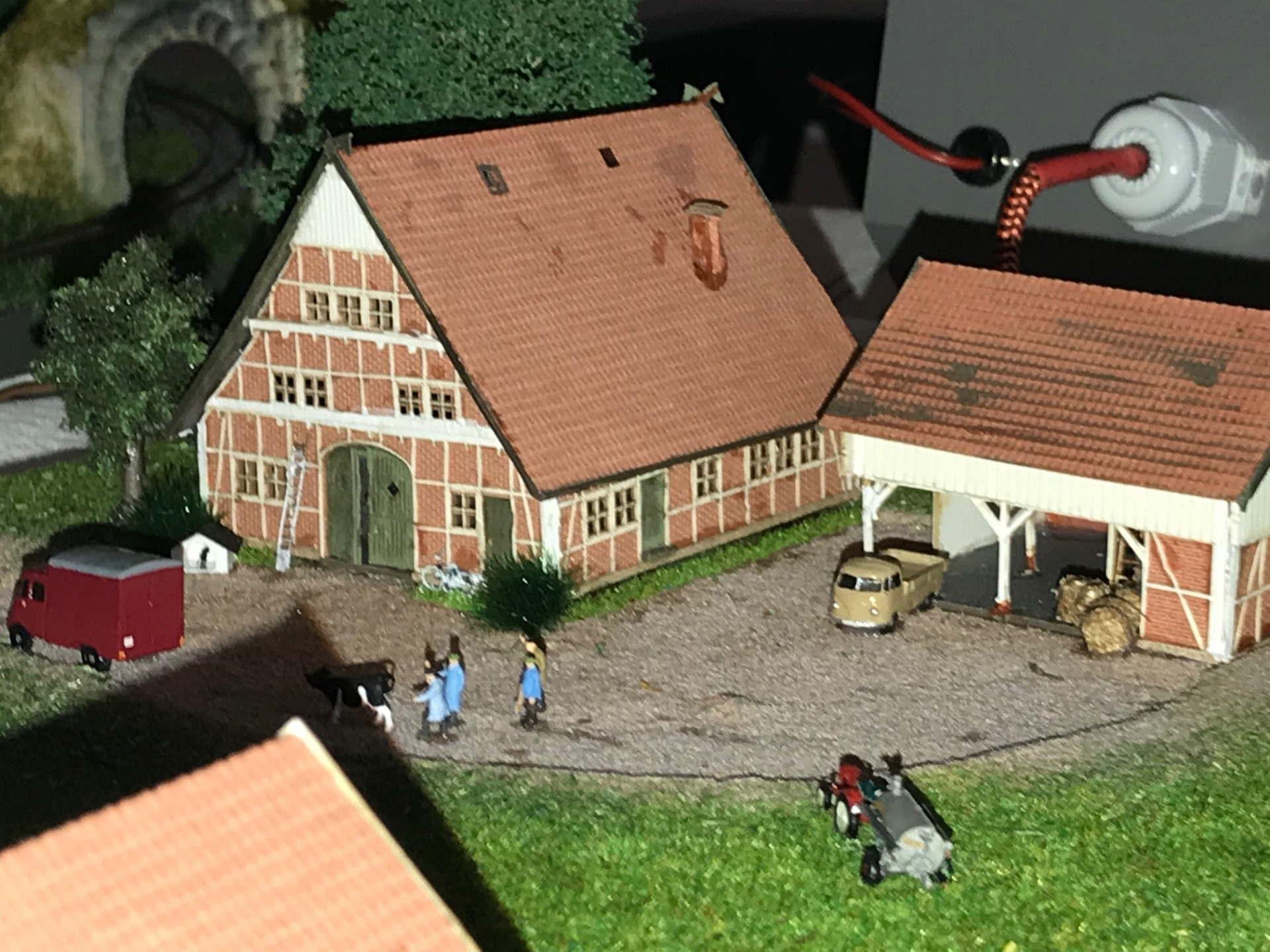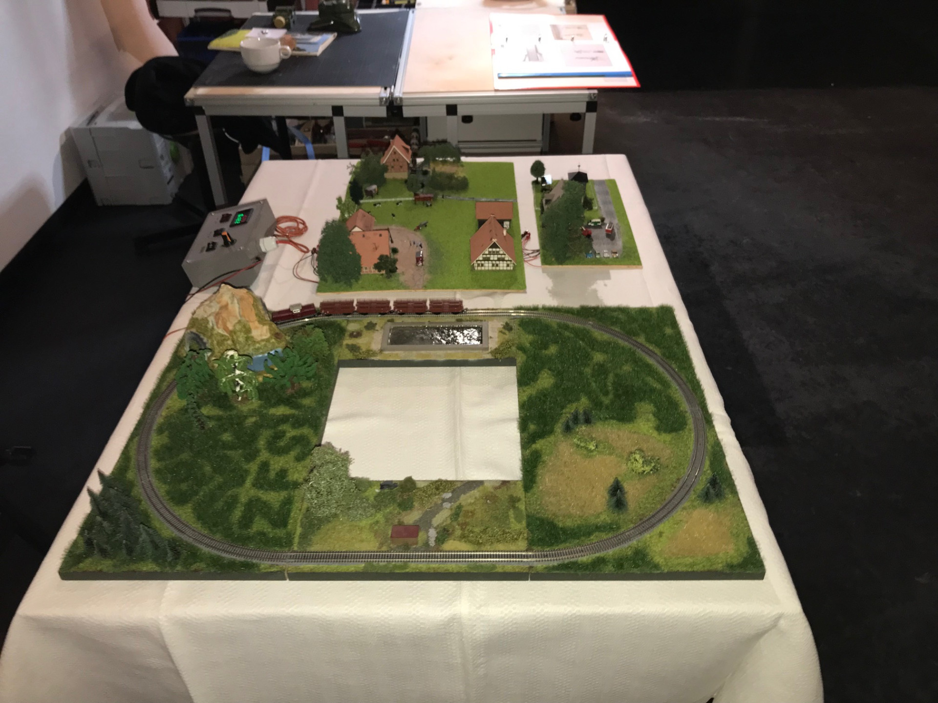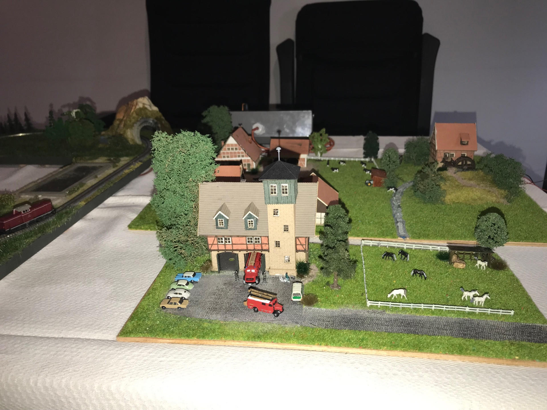 Die kleine Brettchenanlage ist im Einsatz, zusätzlich noch ein Bauernhof Diorama
