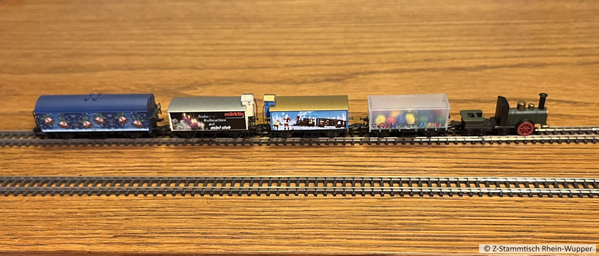 Vor dem Einmotten bis zum Dezember durften diese Weihnachtswagen noch mal aufs Gleis