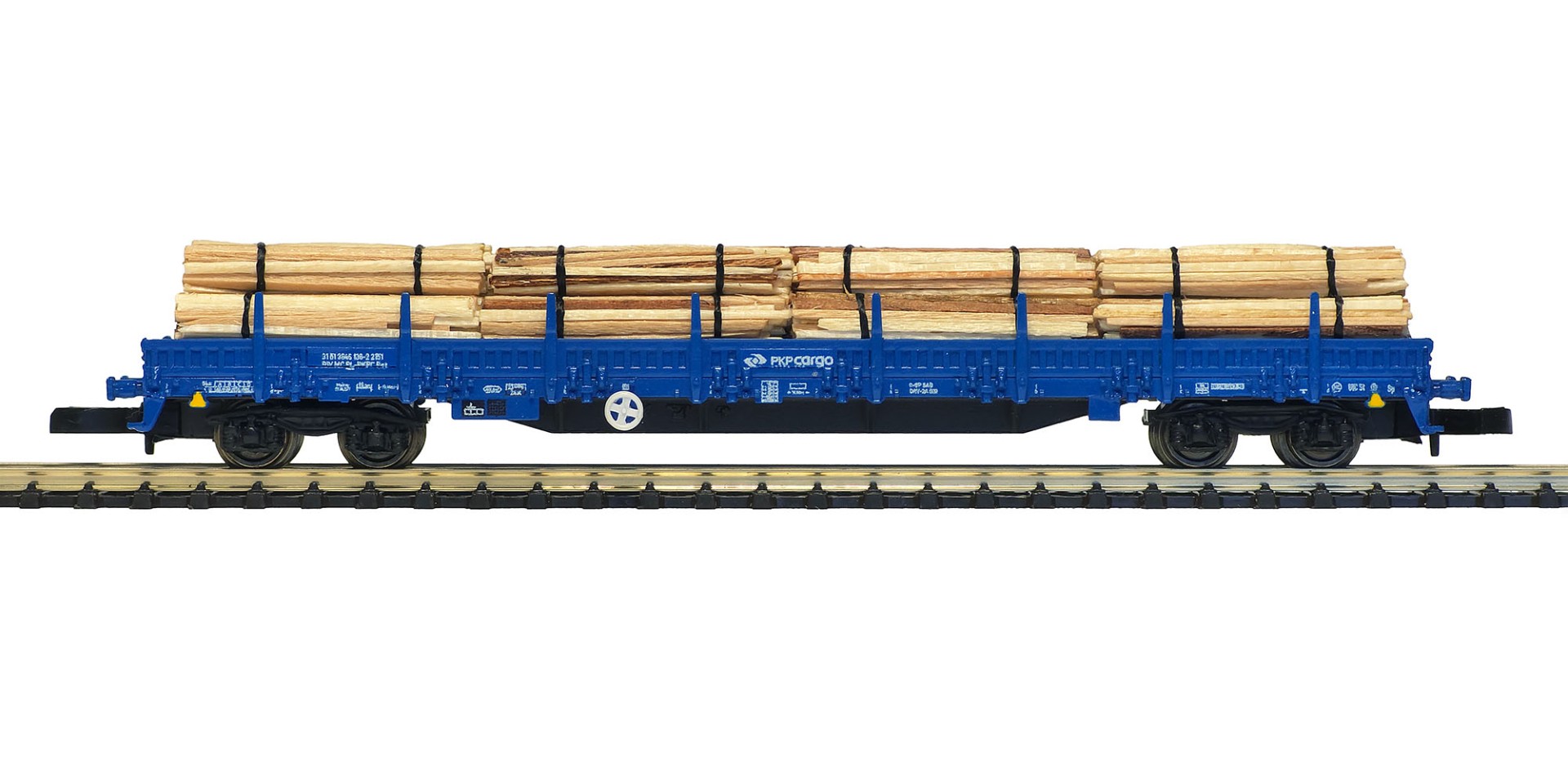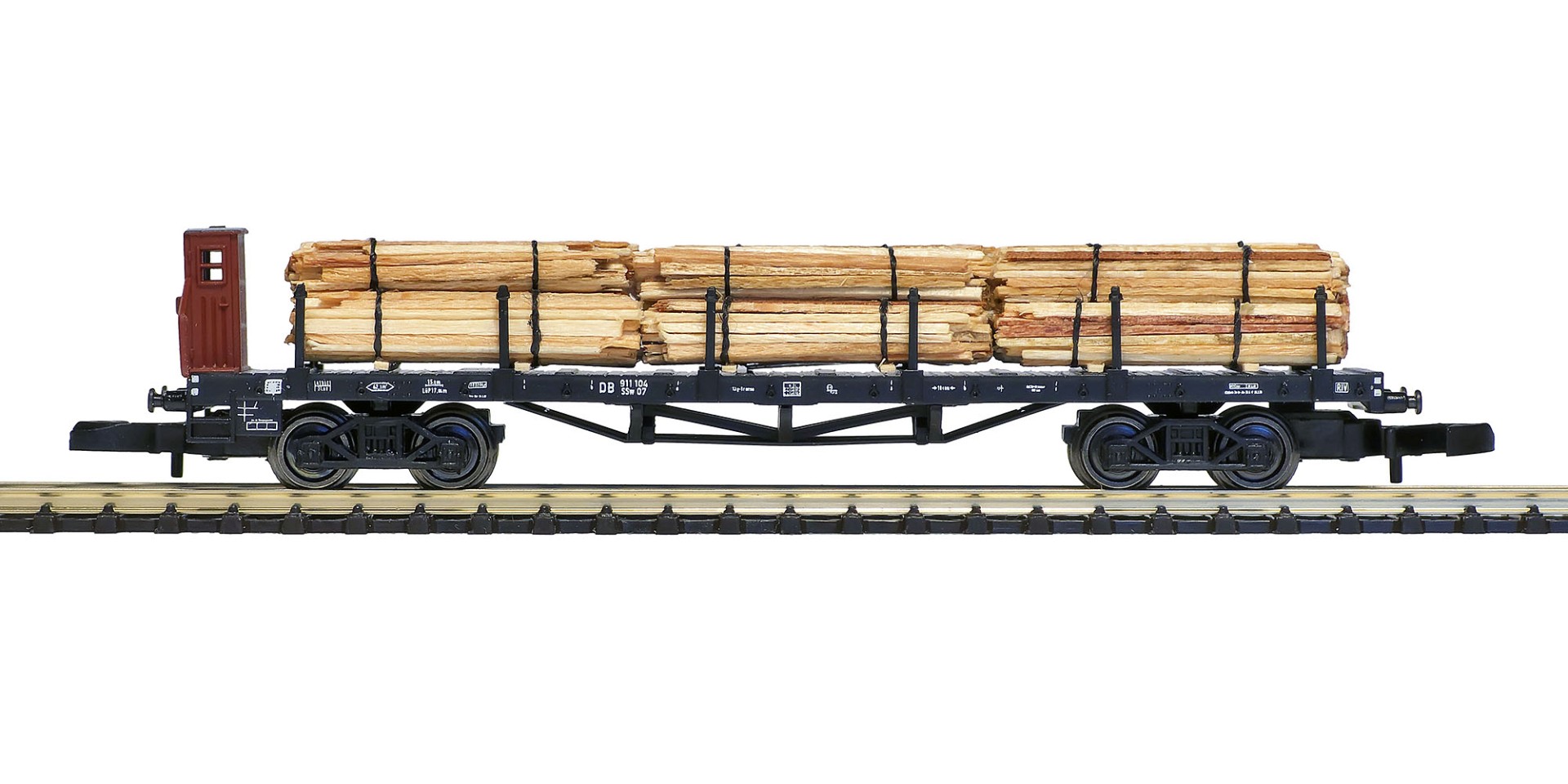 Fits the following types of 4-axle flatcars - Snps 719, Res 687 and Res 424. Wooden bottom anti-slip supports prevent the load insert from sliding on type SNPS stake cars during motion: