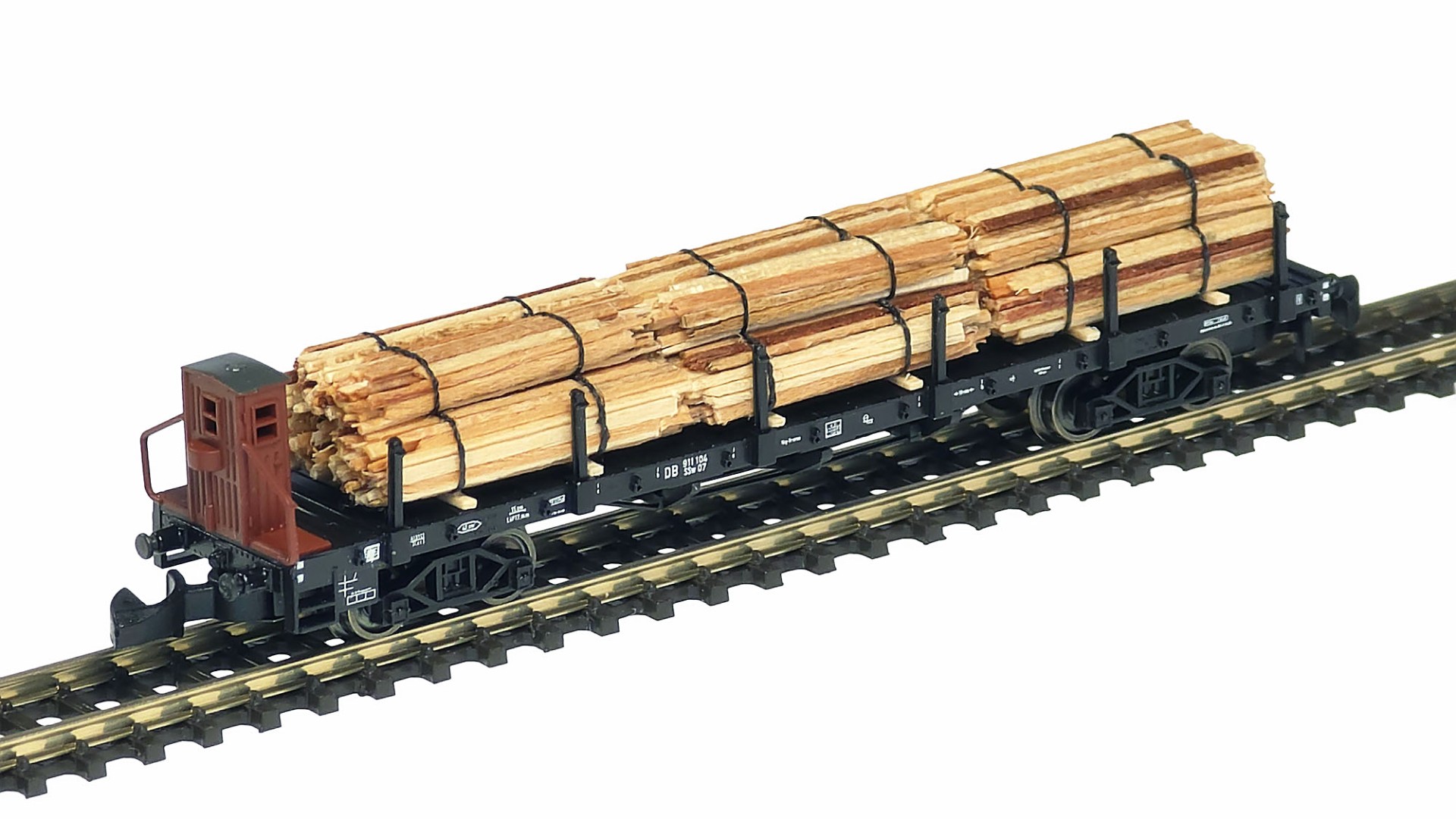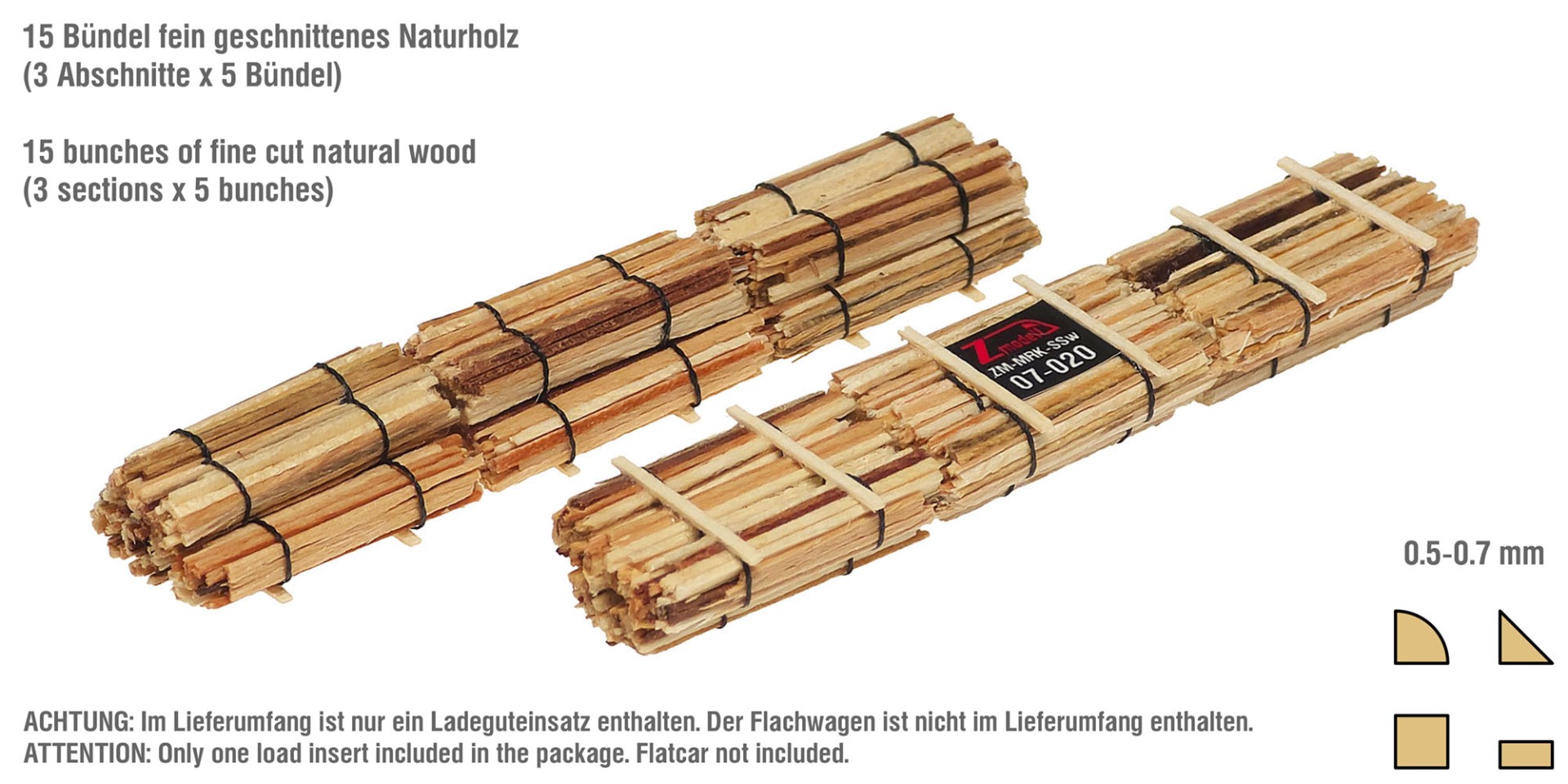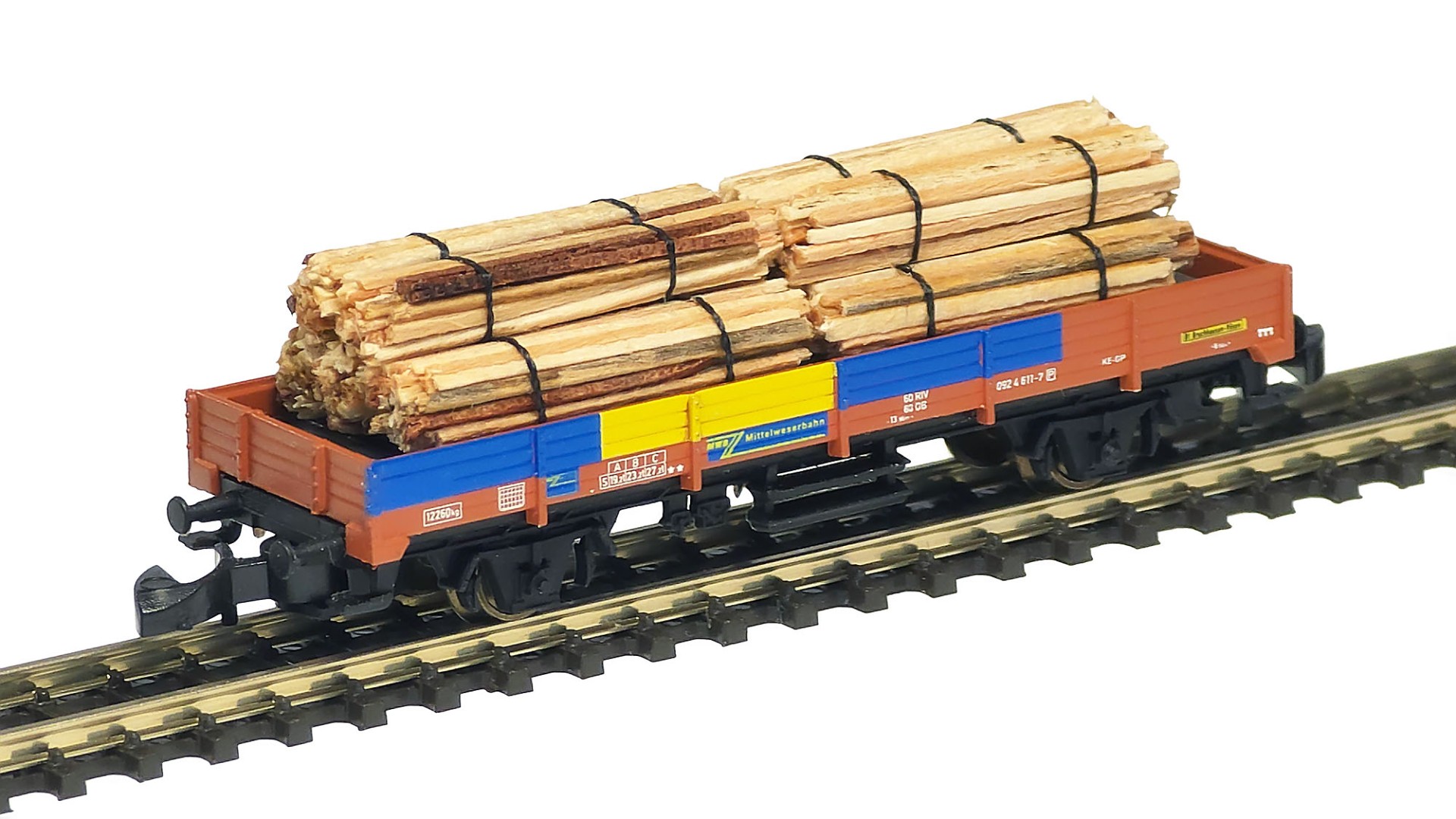 Although it is in general quite difficult to imitate this type of wood product in 1:220 scale, I managed to do it as close to the prototype as possible. For this, very thin (around 0.5 mm) wood sheets in varying colors were used - they have been cut into thin sticks, arranged into round bunches and tied with synthetic thread stabilized with invisible glue.