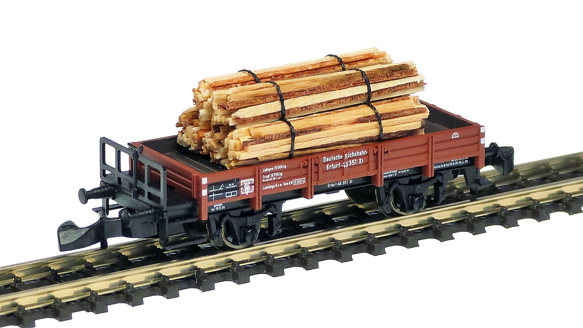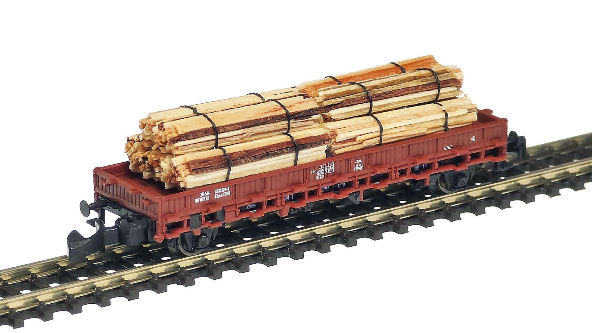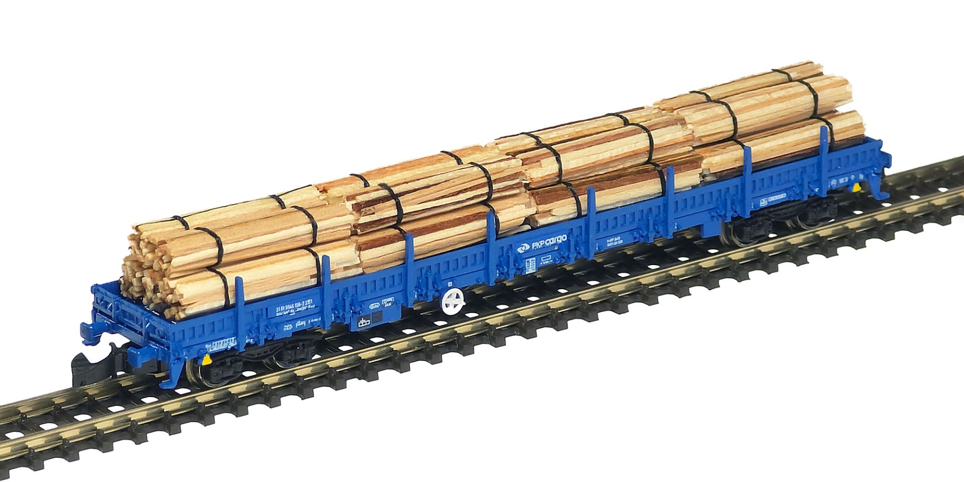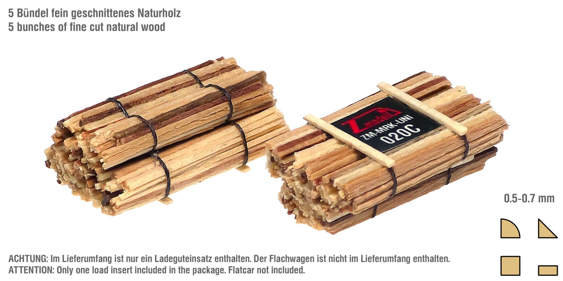 Although it is in general quite difficult to imitate this type of wood product in 1:220 scale, I managed to do it as close to the prototype as possible. For this, very thin (around 0.5 mm) wood sheets in varying colors were used - they have been cut into thin sticks, arranged into round bunches and tied with synthetic thread stabilized with invisible glue.