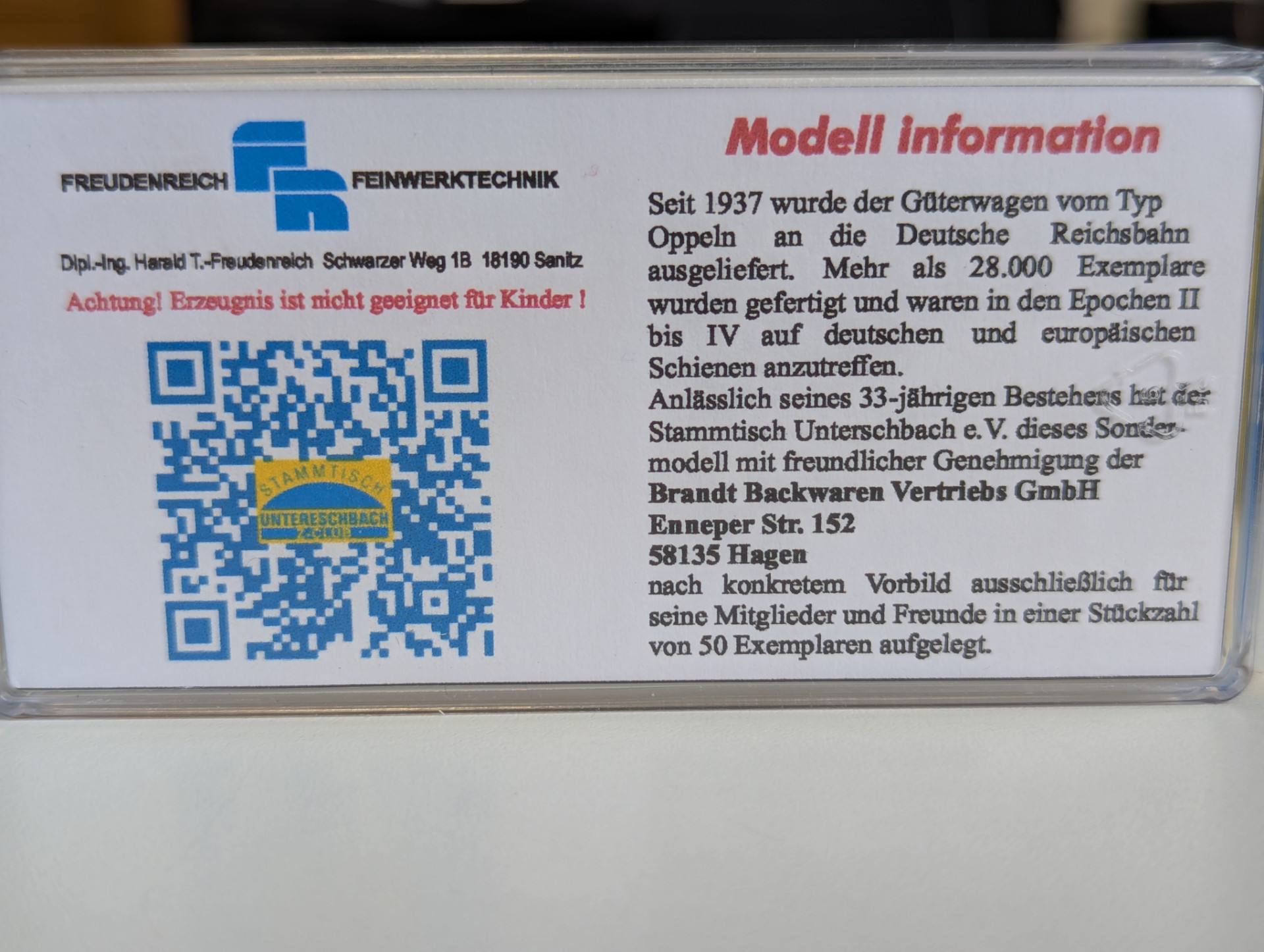Der Streit ist wohl akademisch: Bei seiner Bestellung war er noch der letzte Freudenreich Feinwerktechnik Wagen und bei seiner Auslieferung dann der erste Montageservice Schuster Wagen...