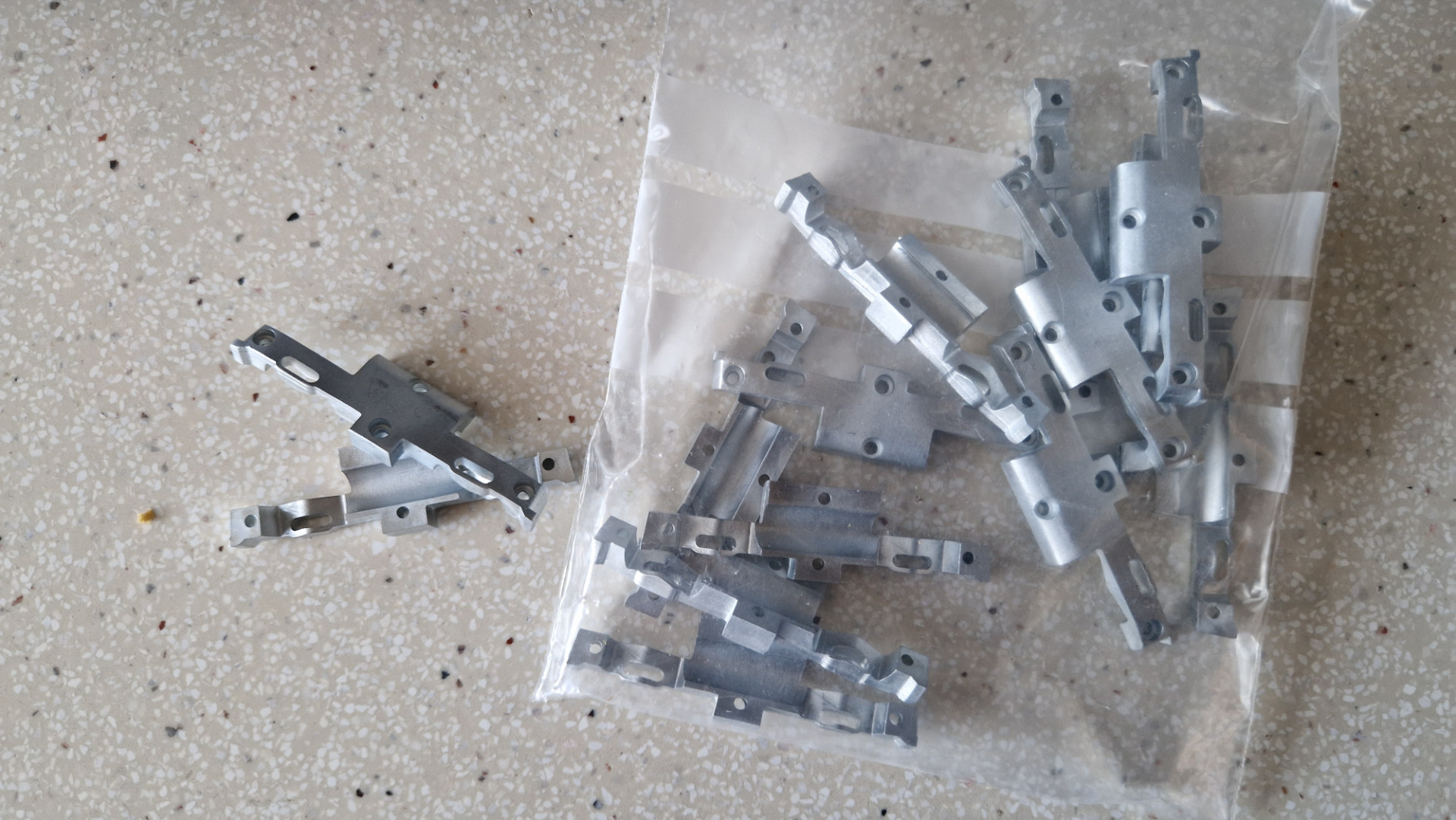 . Darin waren die beiden Varianten des Motorhalters für die BR 64, einmal aus gesintertem Nylon und einmal aus gesintertem Edelstahl.