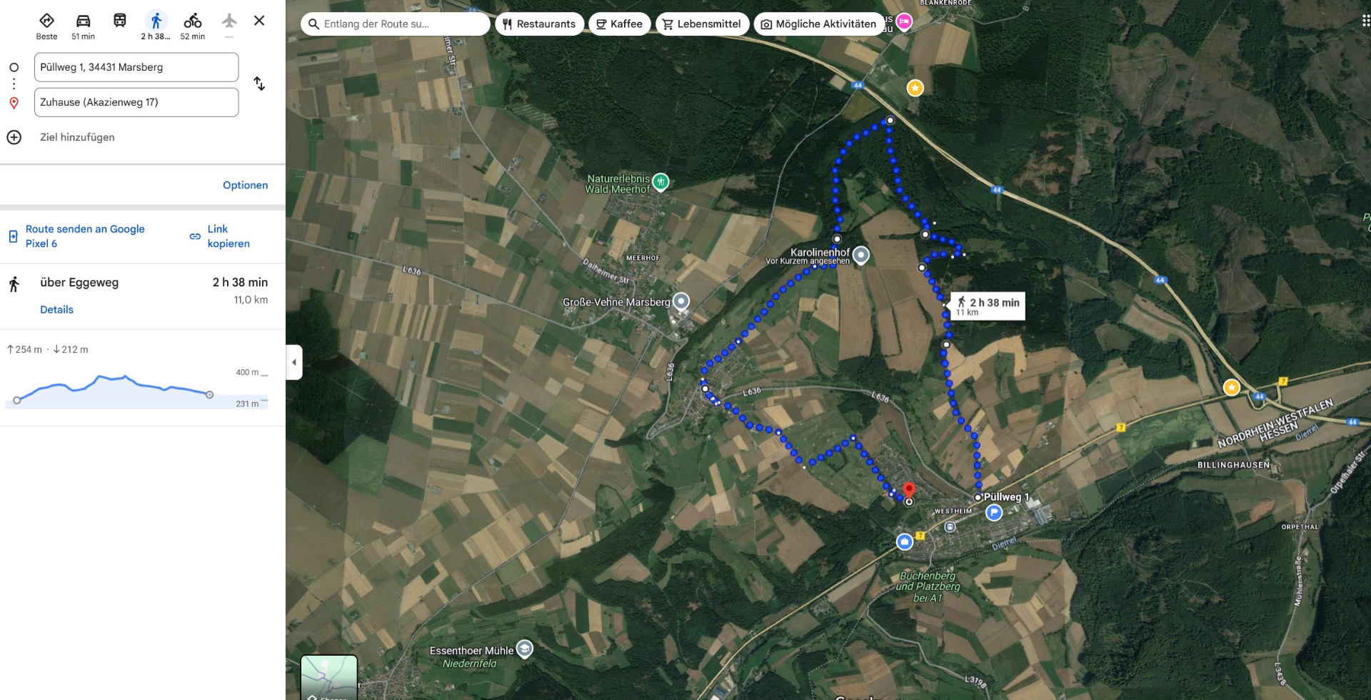 Die Route ist es in etwa geworden, kleine Abkürzung alter Postweg (den kennt Google nicht). In Oesdorf war Dorffest mit Fassbier... Schützenfest-Einstand quasi... ;-)