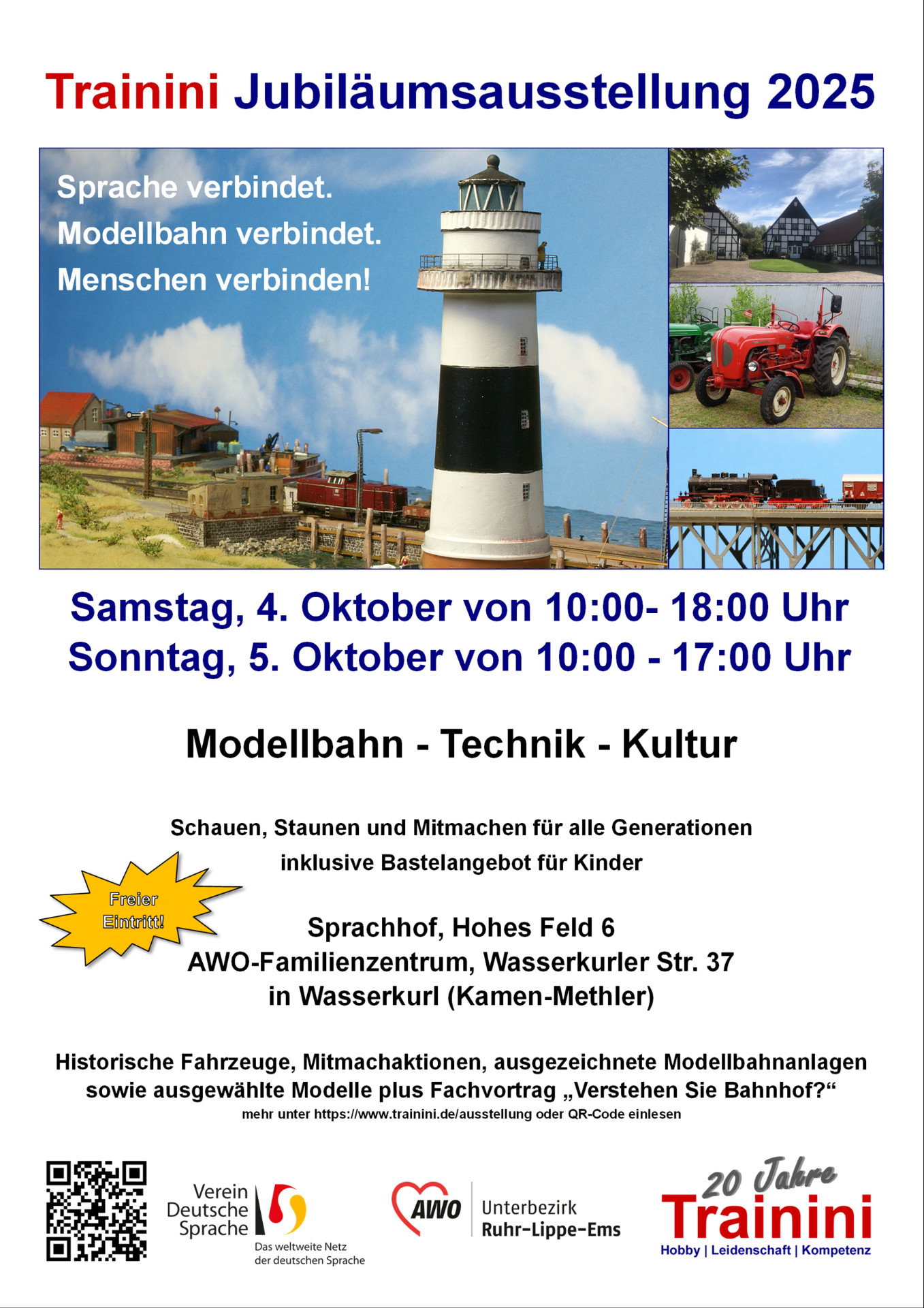 Deshalb darf ich gewiss im Sinne aller, die hier im Vorfeld "die Strippen ziehen", rückmelden, dass es unser gemeinsames Anliegen ist, die Menschen für unsere Arbeit zu begeistern und zu gewinnen. Keine der beteiligten Organisationen und Vereine wird um Spenden böse sein; direkt zugute kommen werden da schon die Erlöse aus einem Bratwurstangebot (Oldtimer-Freunde Kurl/Husen e.V.) und Waffel-Kaffee-Kuchen-Ausgabe (Förderverein der AWO-Kita). Besonders die Jüngsten als Modellbahnnachwuchs liegen uns als Redaktion da sehr am Herzen.