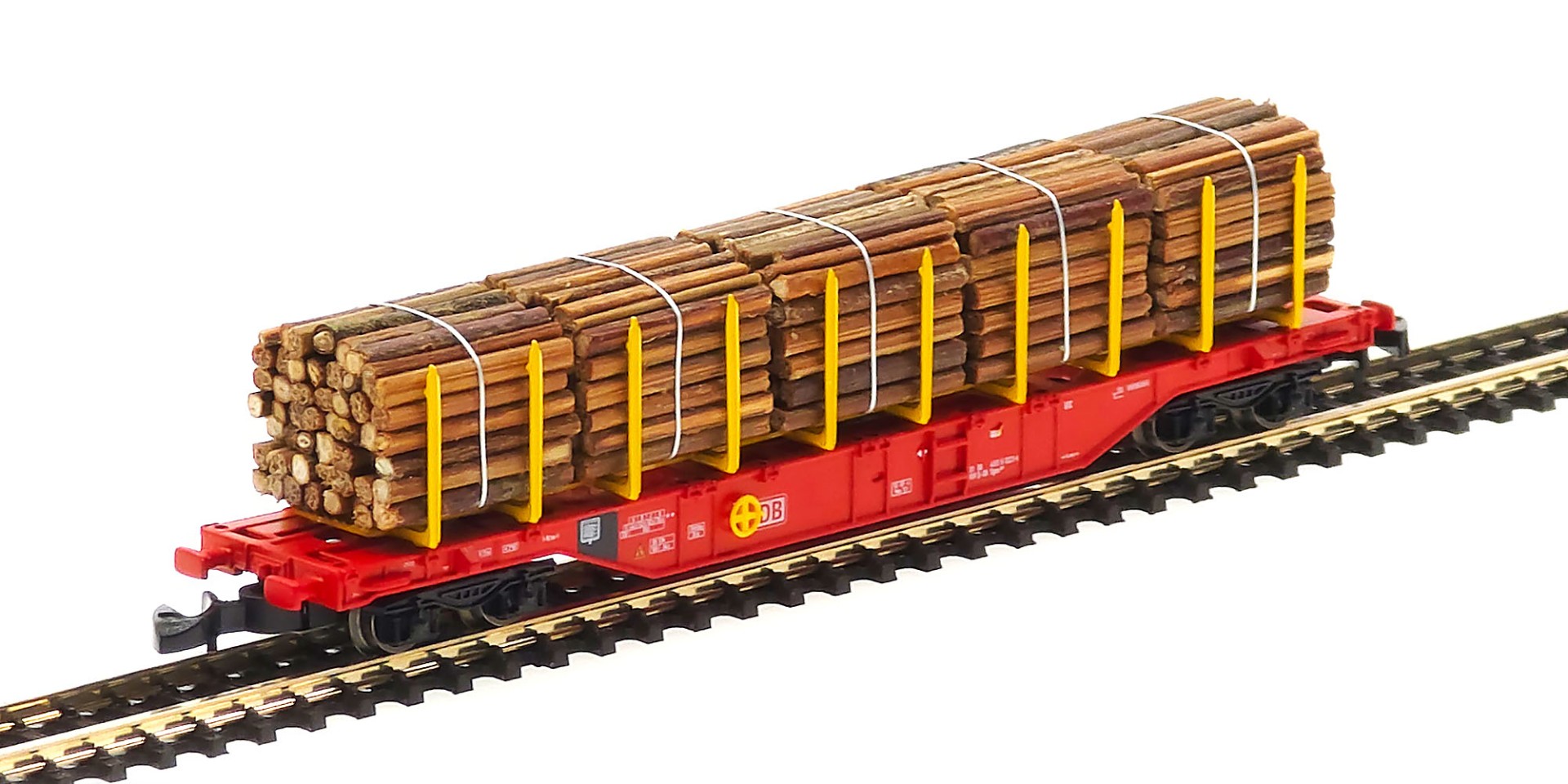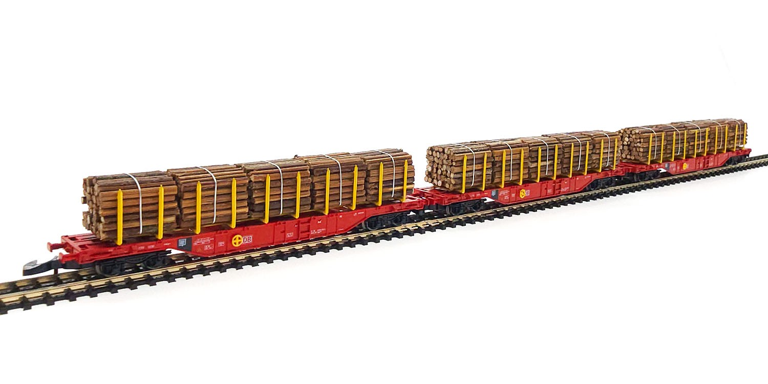 Right after announcement of type SGNS flatcars by Märklin, I decided to dig about what other goods except containers are transported on these flatcars. I found out that they are often used for transporting wood and pipes. For this, they are fitted with removable stake frames on which mentioned loads are stacked and fixed with special fabric or metal belts or even with chains. Here is a number of real life samples: