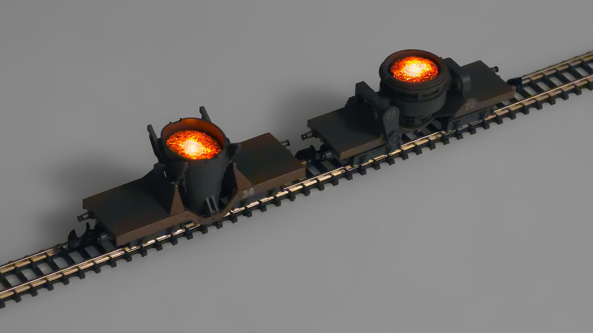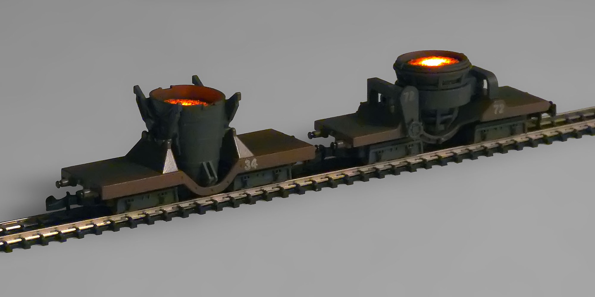 Three years ago, I developed illuminated load inserts for two different metallurgical cars existing in Z scale – the crude iron ladle car and the slag car. They were powered by small 3V Lithium batteries. The reason for choosing batteries as a power source was because these car required too strong modifications to be powered from the tracks which would not be accepted by the most users: