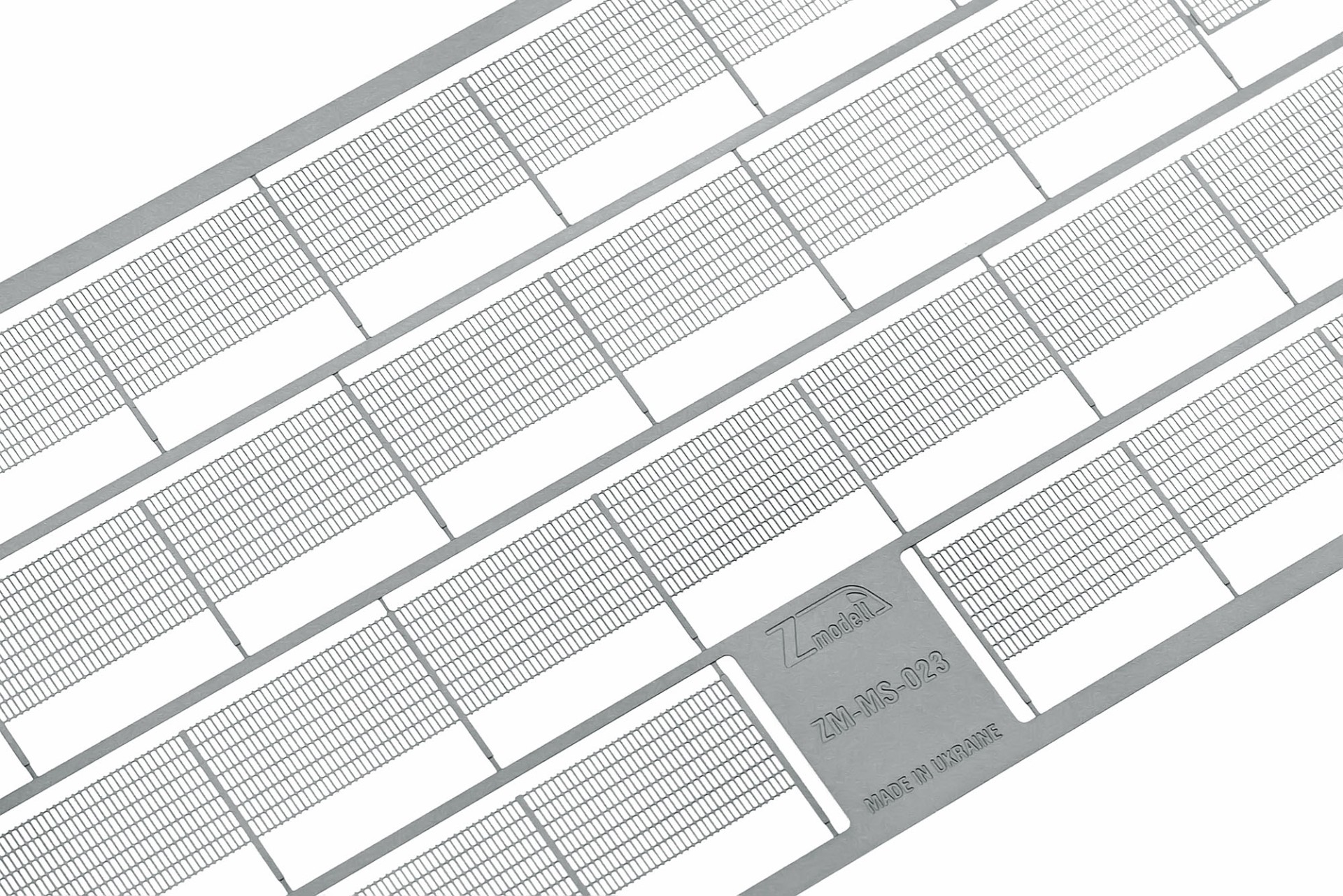 The traffic barriers are made of thick 0.3 mm photo etched nickel silver and feature filigree half-etched elements. They are 100% true to scale and have dimensions of 10 x 5.5 mm. The barriers are airbrushed with two-layer lacquer coating (white metal primer + white lacquer). The warning stripes are printed on special ultrathin plastic adhesive film and manually applied separately.