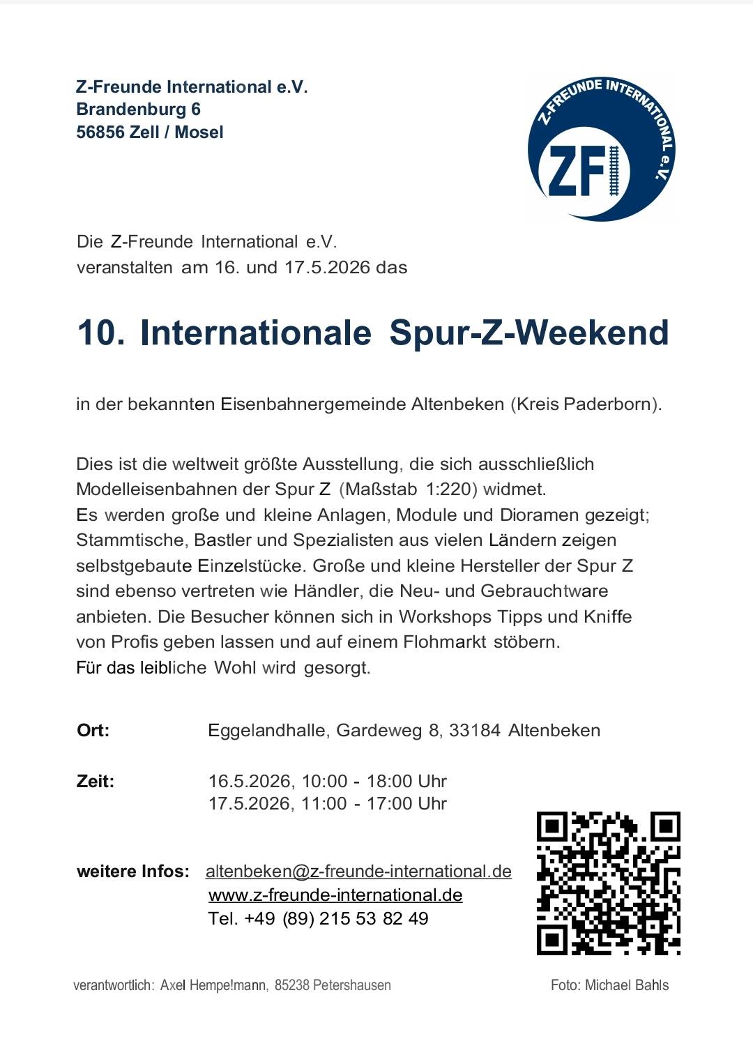 16./17.5.2026: 10. Int. Spur-Z-Weekend Altenbeken - Mitteilungen des Veranstalters