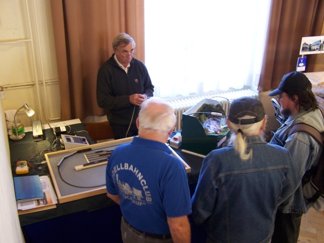 Danach ging es schon in die Z-Ecke. Diese wurde durch Willi mit seiner Anlage, unserem Klaus, der dort seine Soundprojekte vorstellte sowie einem dritten Z-Bahner (Willi hilf mir mal mit Namen, wenn er damit einverstanden ist) gebildet.