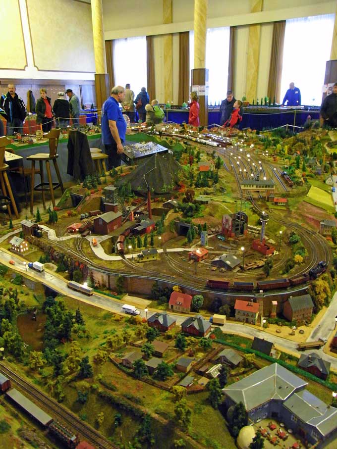 Nach dem Betreten des Mehrzwecksaals der Brauereigaststätte zeigte sich linker Hand auf der Bühne eine ziemlich große liebevoll gestaltete LGB-Anlage