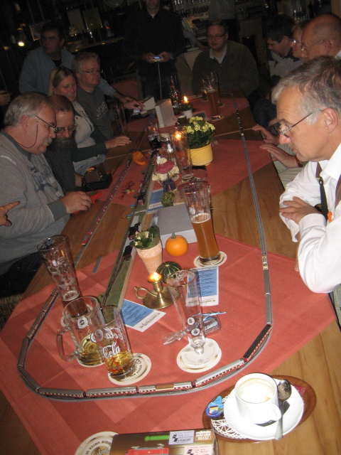 Wieder ein gelungener Z-Stammtischabend mit vielen Mitgliedern/Freunden/Bekannten, guten Speisen u. Getränken, viel Verkehr mit Zügen auf dem Riesenkreis.