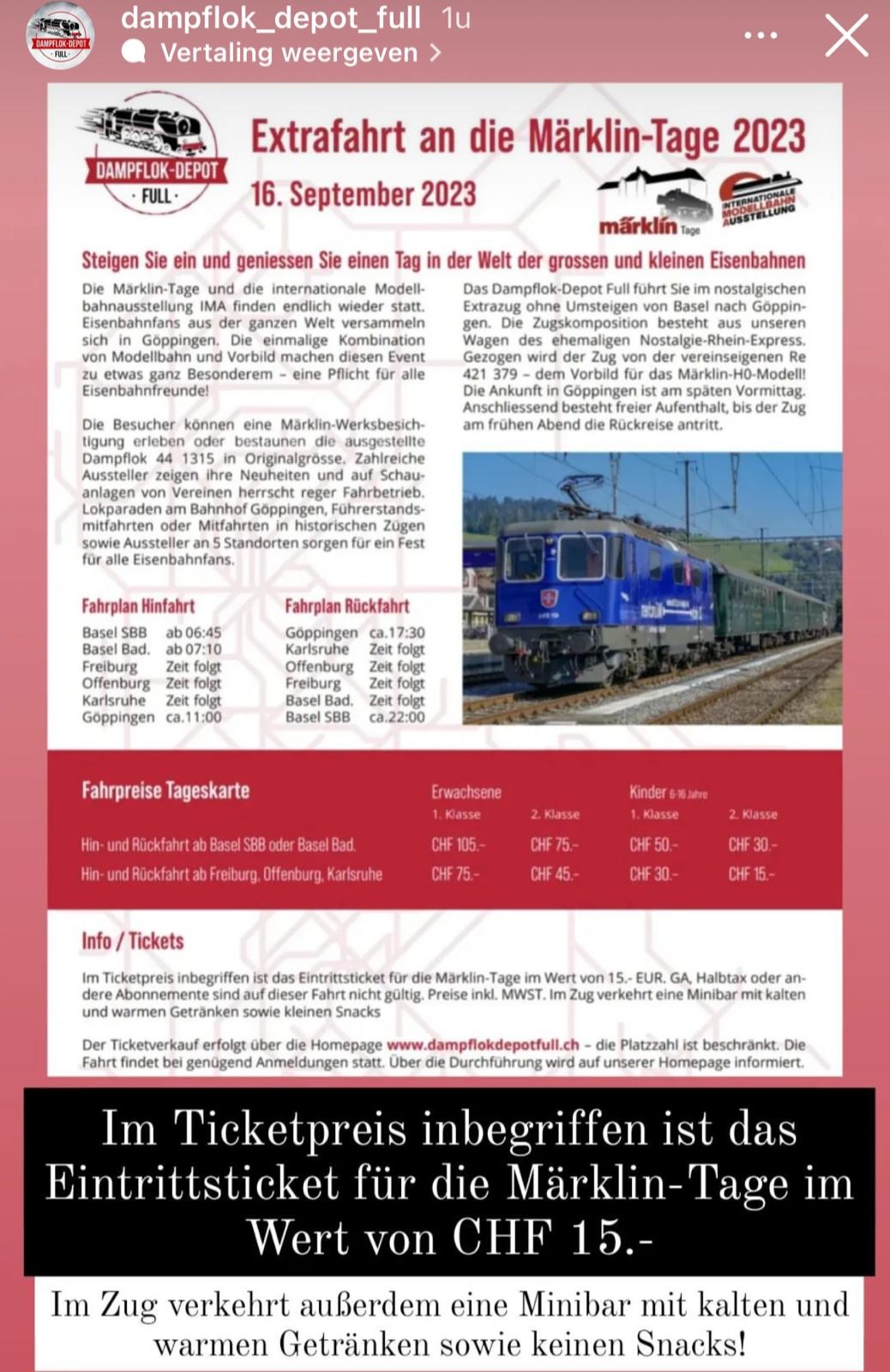 ist nicht im Eintritt zur IMA / Märklin-Tage enthalten.