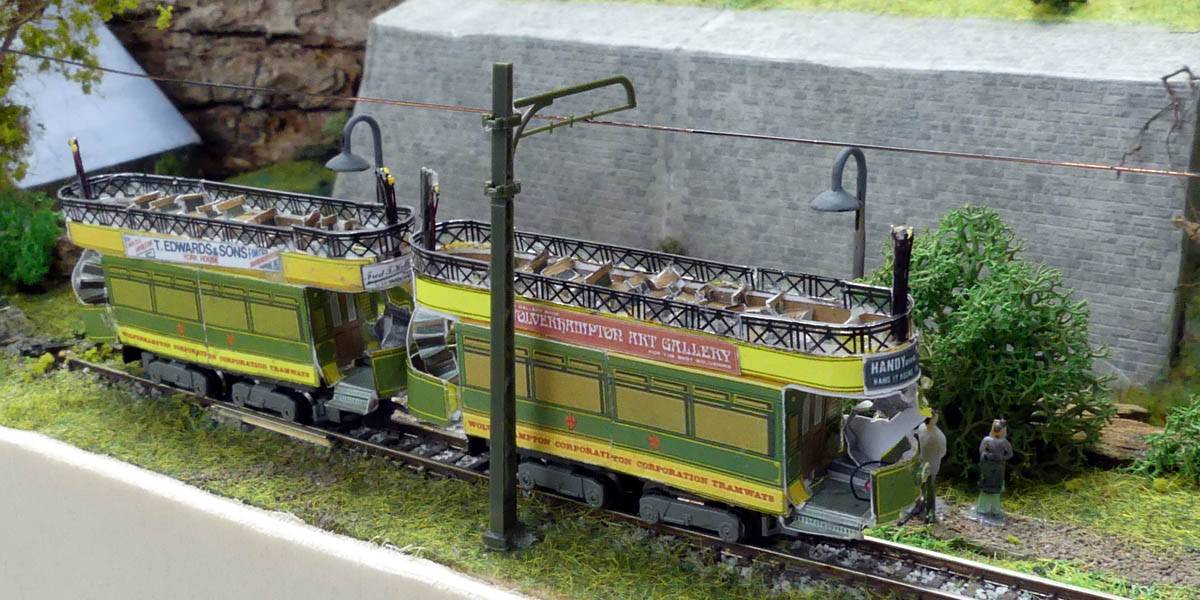 Am vorderen Anlagenrand pendelt eine Nm (N6.5 ?!?) Trambahn auf Shortybasis.
