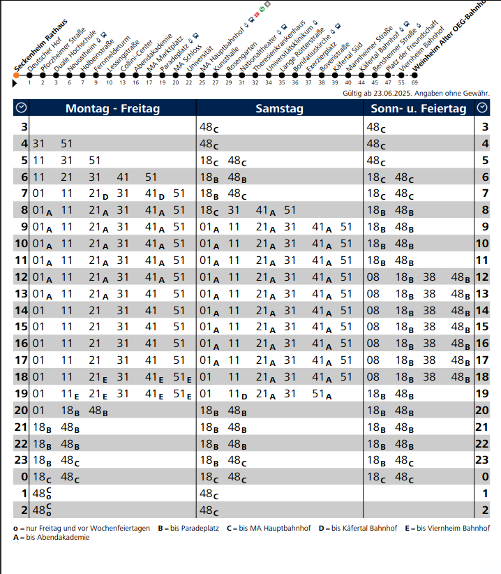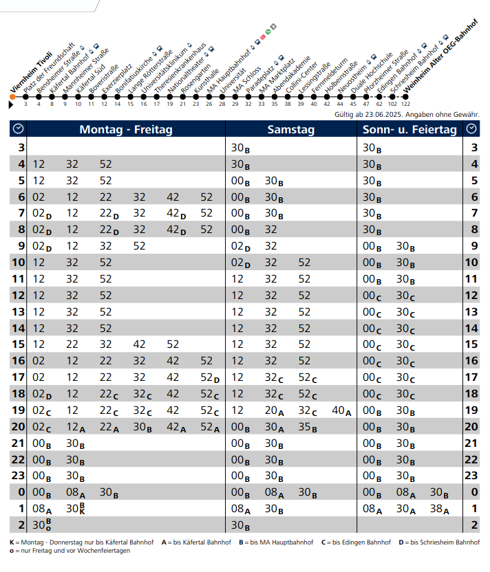 23:01 von Seckenheim/ 23:06 nach Weinheim