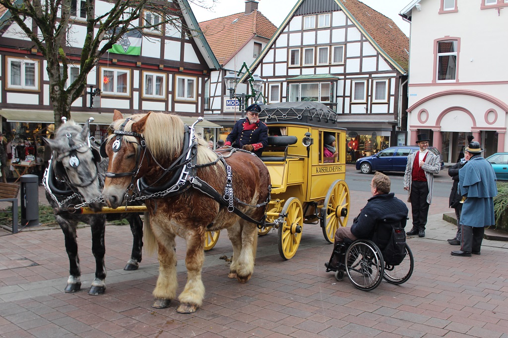 Der Mann im Rollstuhl ist übrigens Herr Dr. Stiewe, der sich sehr um die Geschichte Blombergs bemüht hat und mehrere Bücher verfaßt sowie ein Fachwerkhaus restauriert hat.