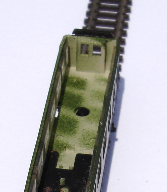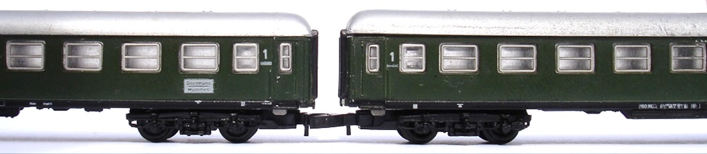 Anfangs wurden die D-Zug-Wagen aus hellgrauem Kunststoff gegossen und anschließend farblich umlackiert. Hier ersichtlich bei einem 2. Klasse Wagen, Artikel Nr. 8711: