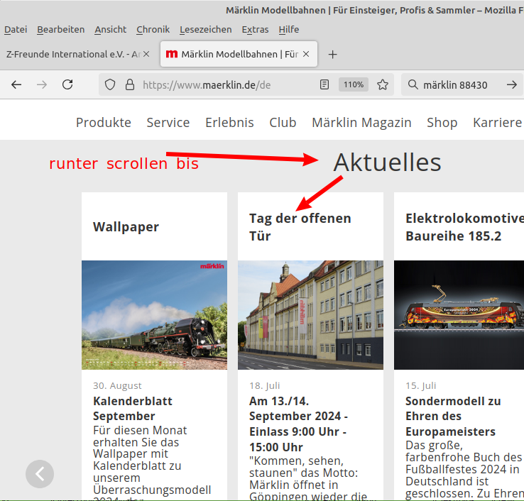 Was mich wundert: Nirgends auf Märklins Webseite wird der Tag der offenen Tür angekündigt oder verlinkt. Nur über die Suche findet man die Unterseite mit mehr Informationen zur Veranstaltung.