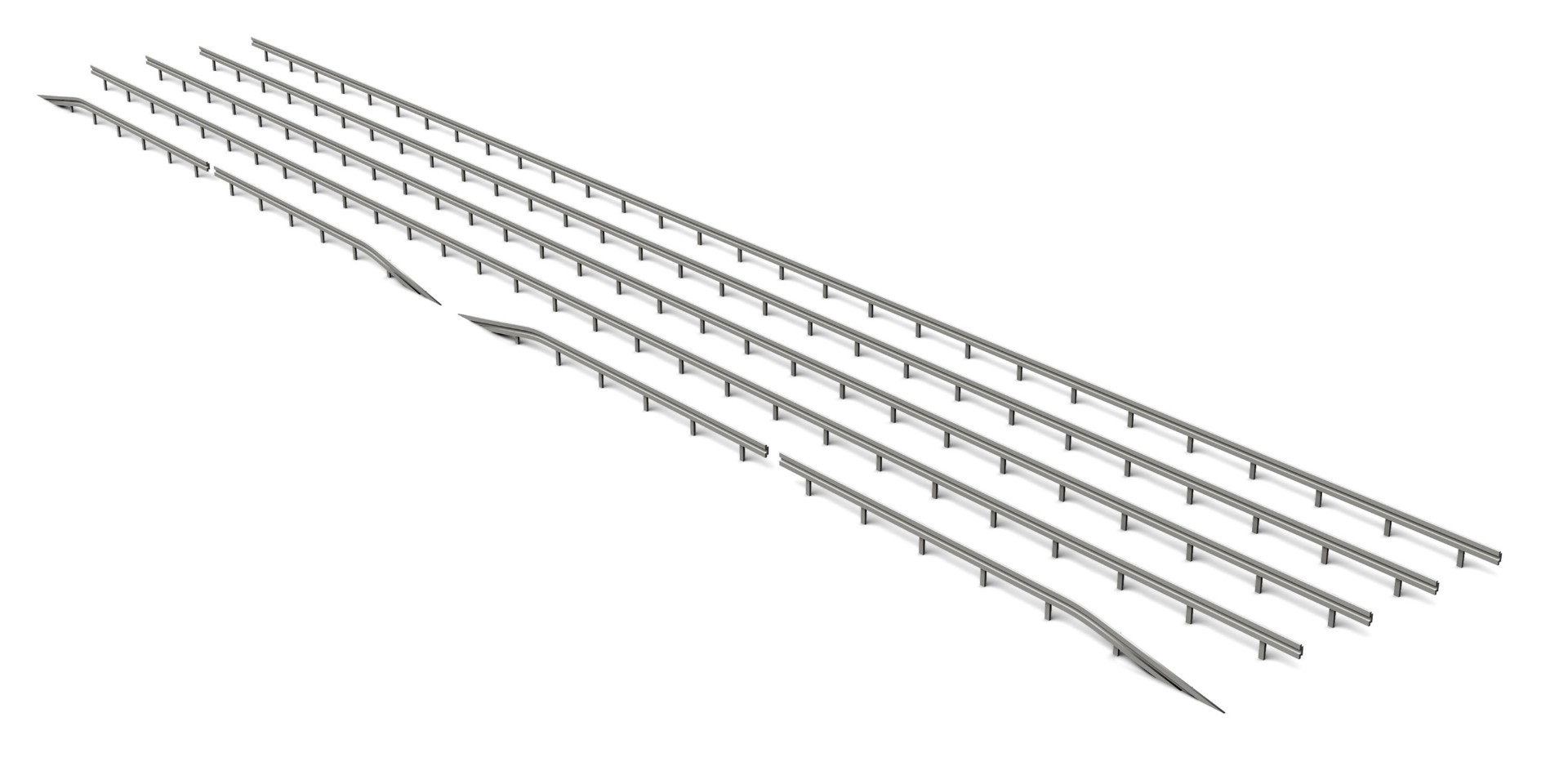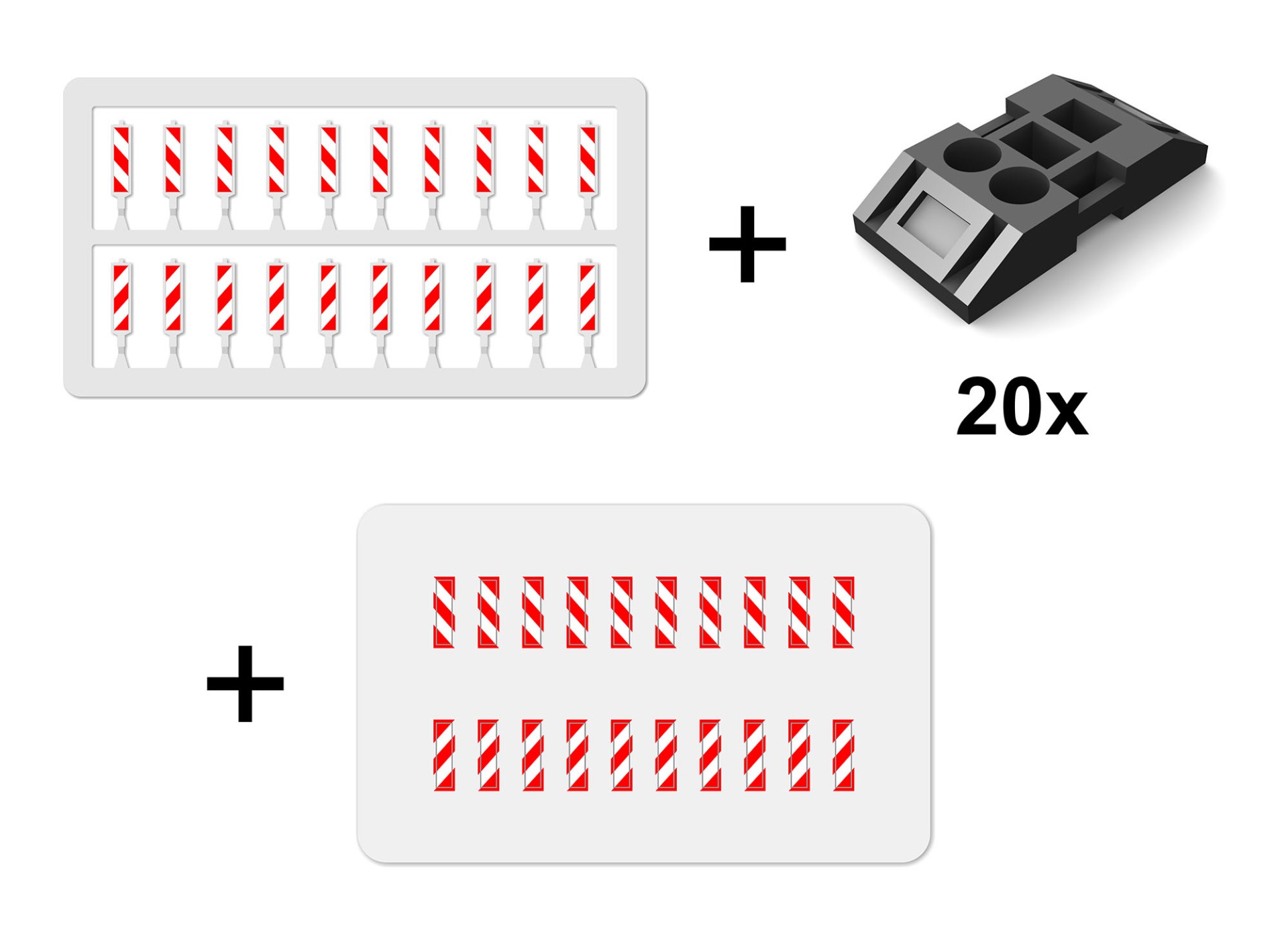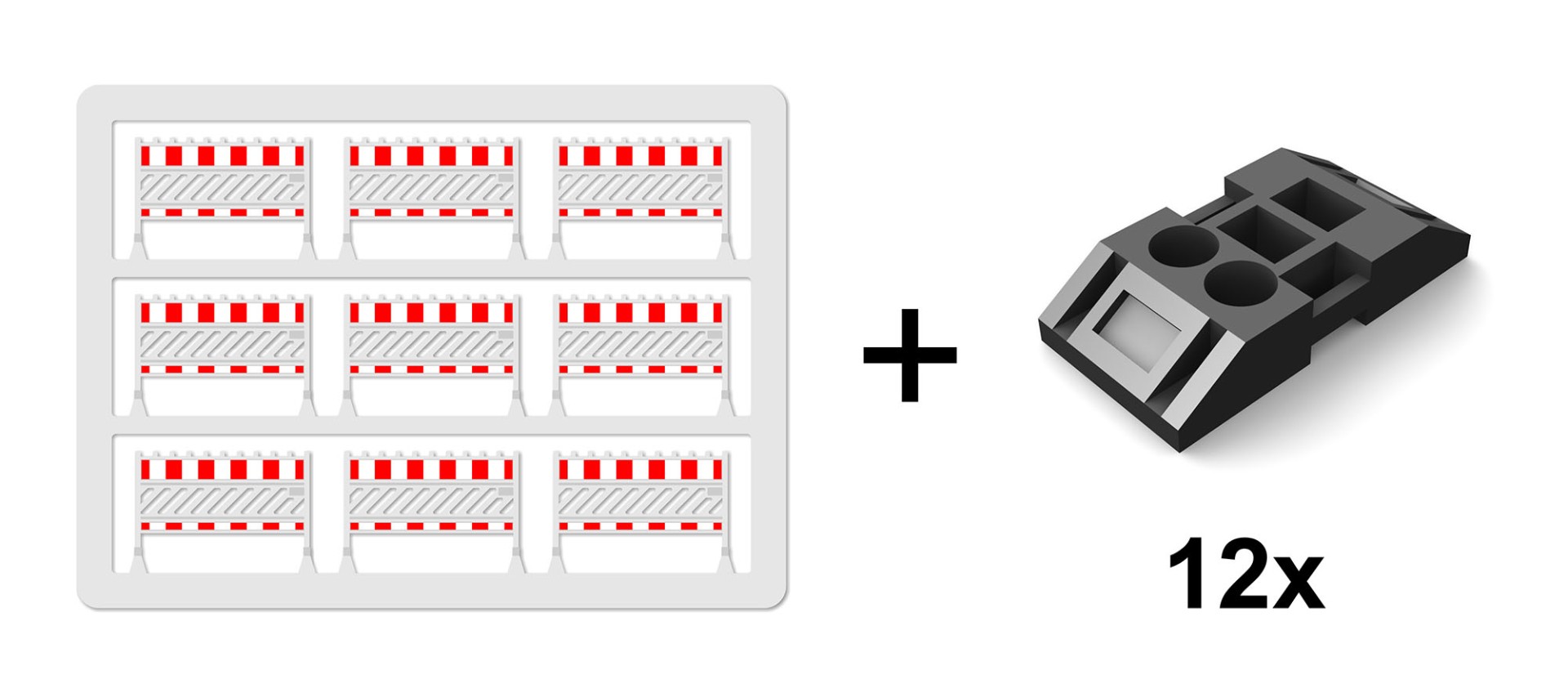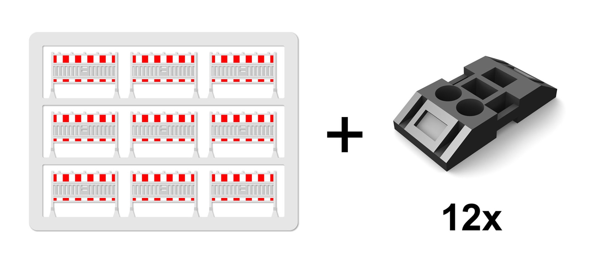 The road barriers come with single footplates. Each set consists of 9 finished barrier sections + 12 single footplates: