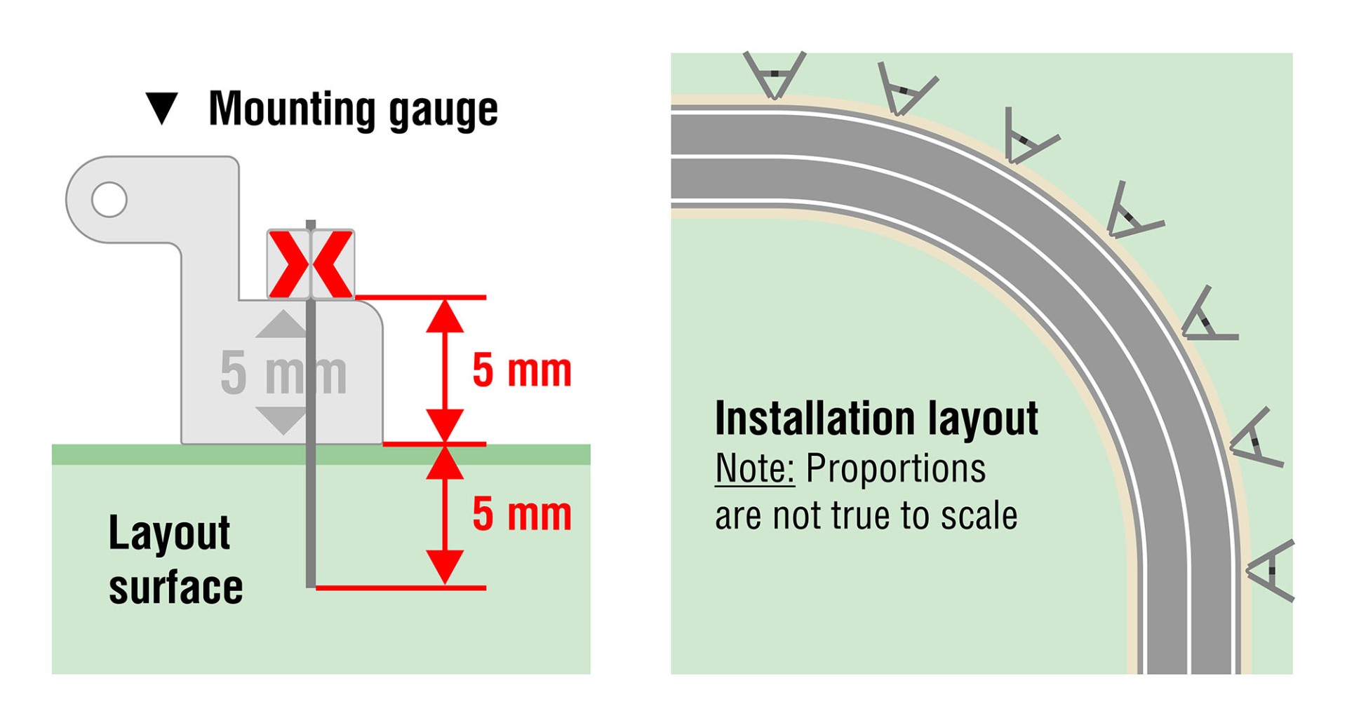 In order to make the installation process easier and more precise, I added a special metal piece to the package – a tiny mounting gauge that allows installing the signs at the same height: