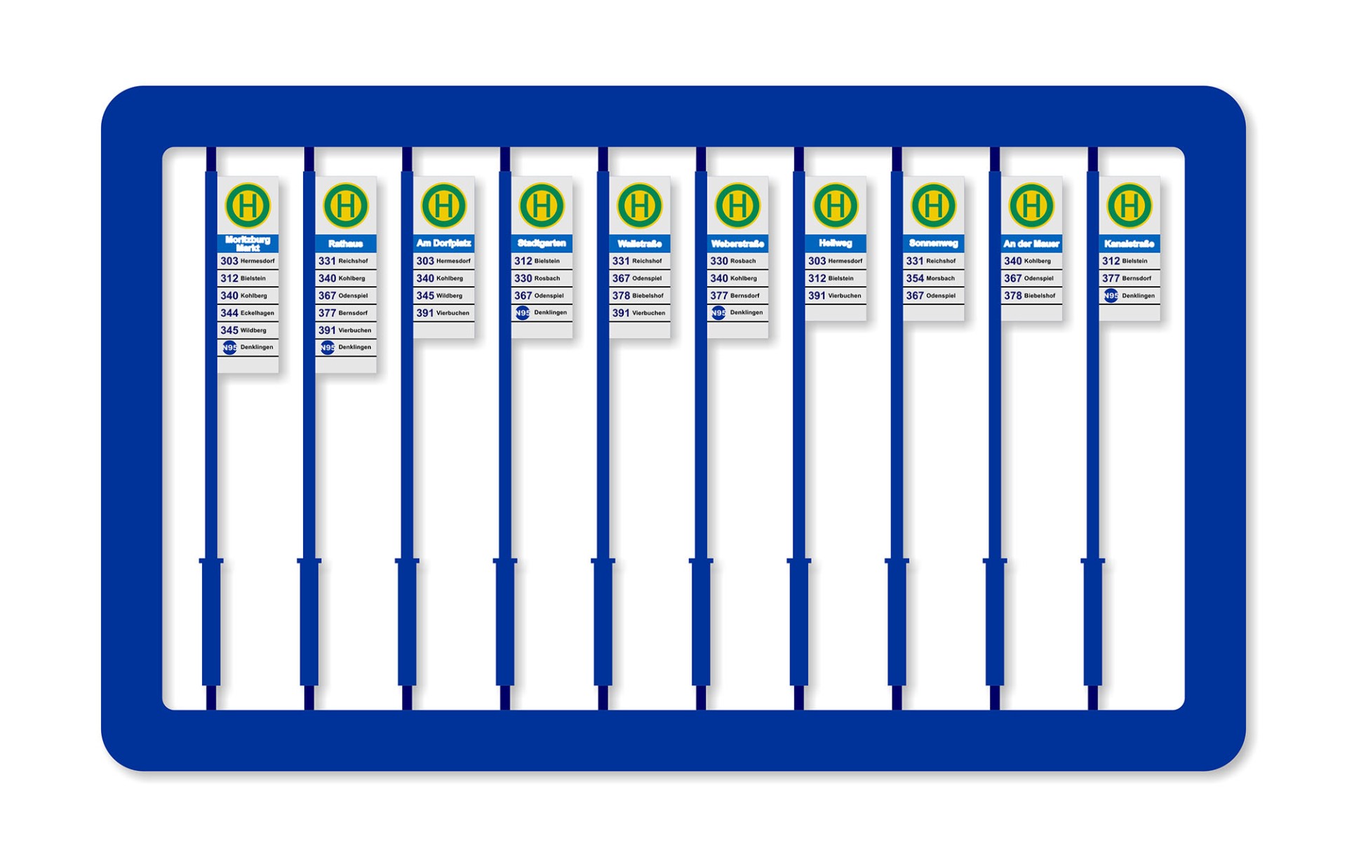 Of course, it doesn’t mean that the scope of usage of these signs on layouts is limited only to this area – the same design, but only with different colors can be met in other cities across Germany, too.