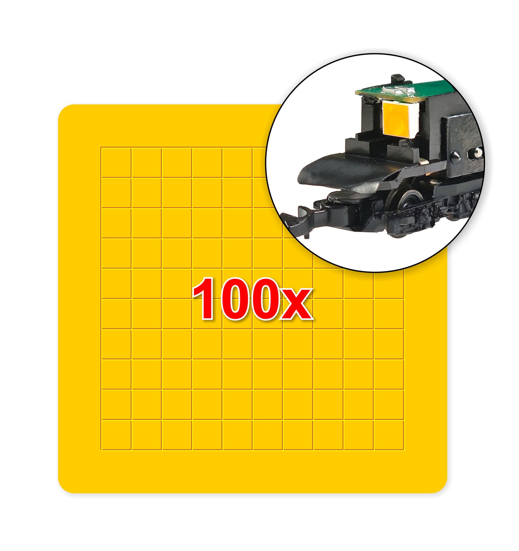 I decided that these small items may be useful to others, too, and created a new product. Warm white LED filters have a size of 3.5 x 3.5 mm and arranged in sets of 100 pieces. They are suitable for LEDs installed in Velmo decoders for BR 150, 151 and 103 electric locomotives, and also NOHAB diesel locomotives, but can be used with other types of LEDs, for example with a popular size of 3.5 x 2.8 mm: