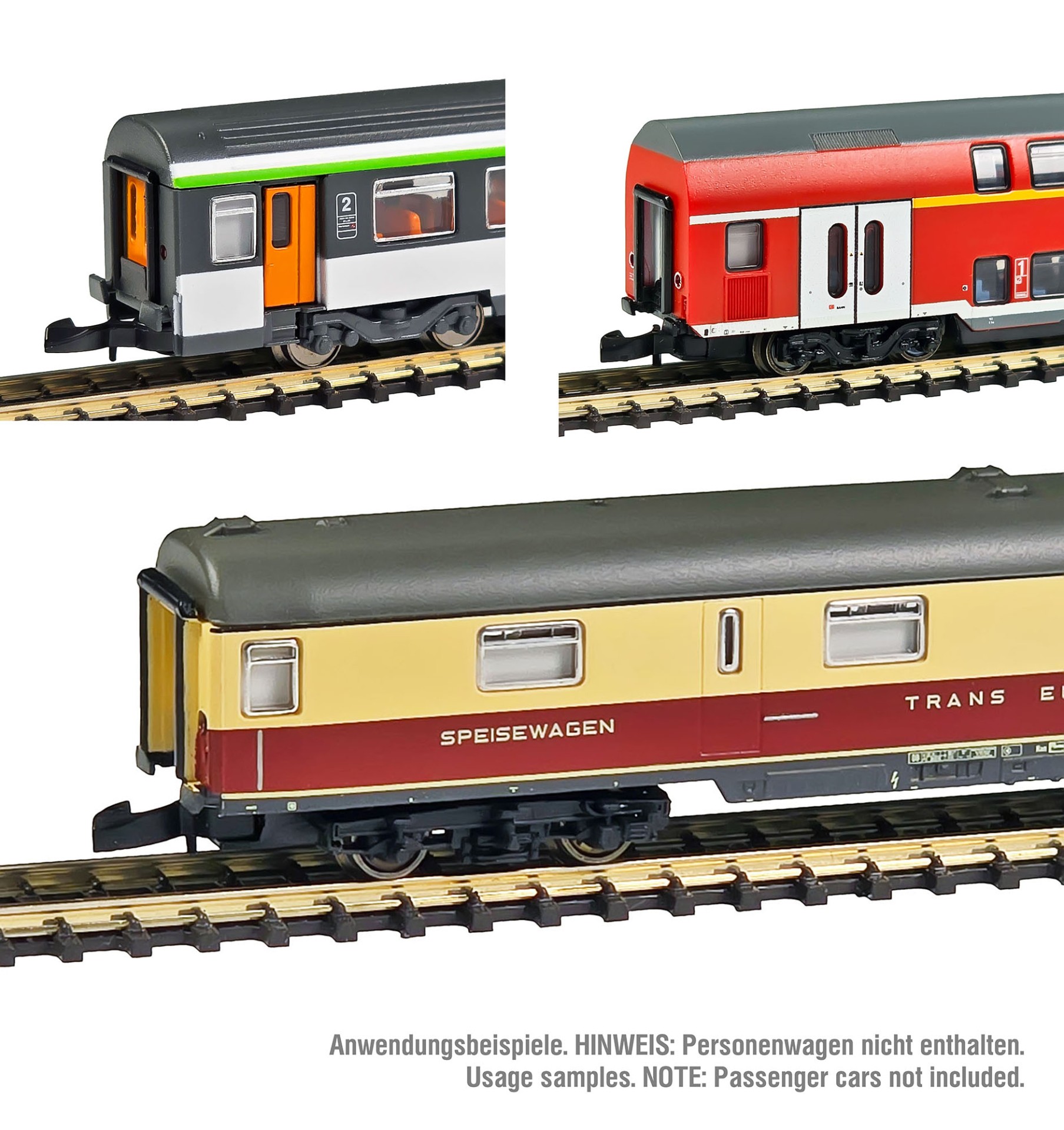 The color tone of the stickers fits perfectly to all types of passenger and dining cars. Here are some usage examples: