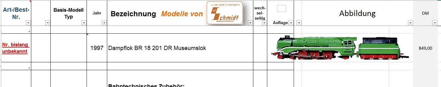 Obwohl mir die Art.-Nr. immer noch nicht bekannt ist, habe ich die Lok in die Liste aufgenommen. Gruß, FJMichael Bahls hat geschrieben: Do 9. Jan 2020, 20:30 ....