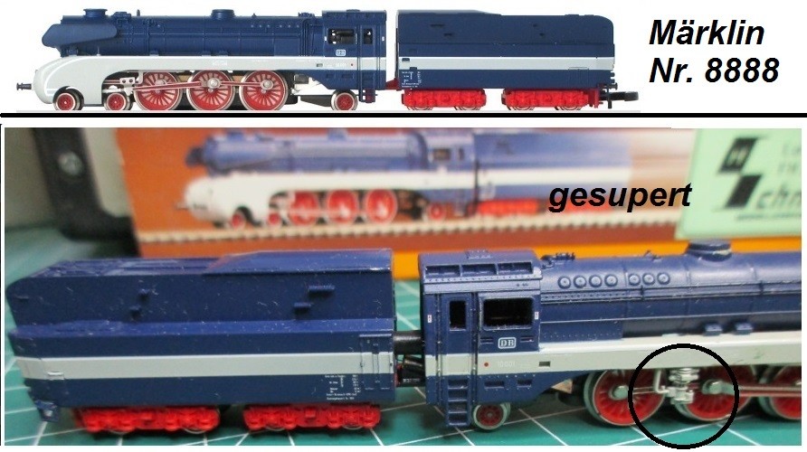 Habe jetzt mal gegoogelt und musste feststellen, dass Schmidt wie bei manch anderen Loks auch "nur" einen Faulhaber eingebaut hat, hier in den Tender. Am Gehäuse hat er sichtlich nichts verändert, deshalb auch keine eigene Nummer vergeben, weshalb es auch kein Kandidat für den Katalog ist. Was ich als vermeintliche Veränderung auf der Abbildung eingekreist habe, ist serienmäßig bei dieser Lok auf der rechten Seite zu finden :o . Meine Aufregung war schließlich umsonst :x