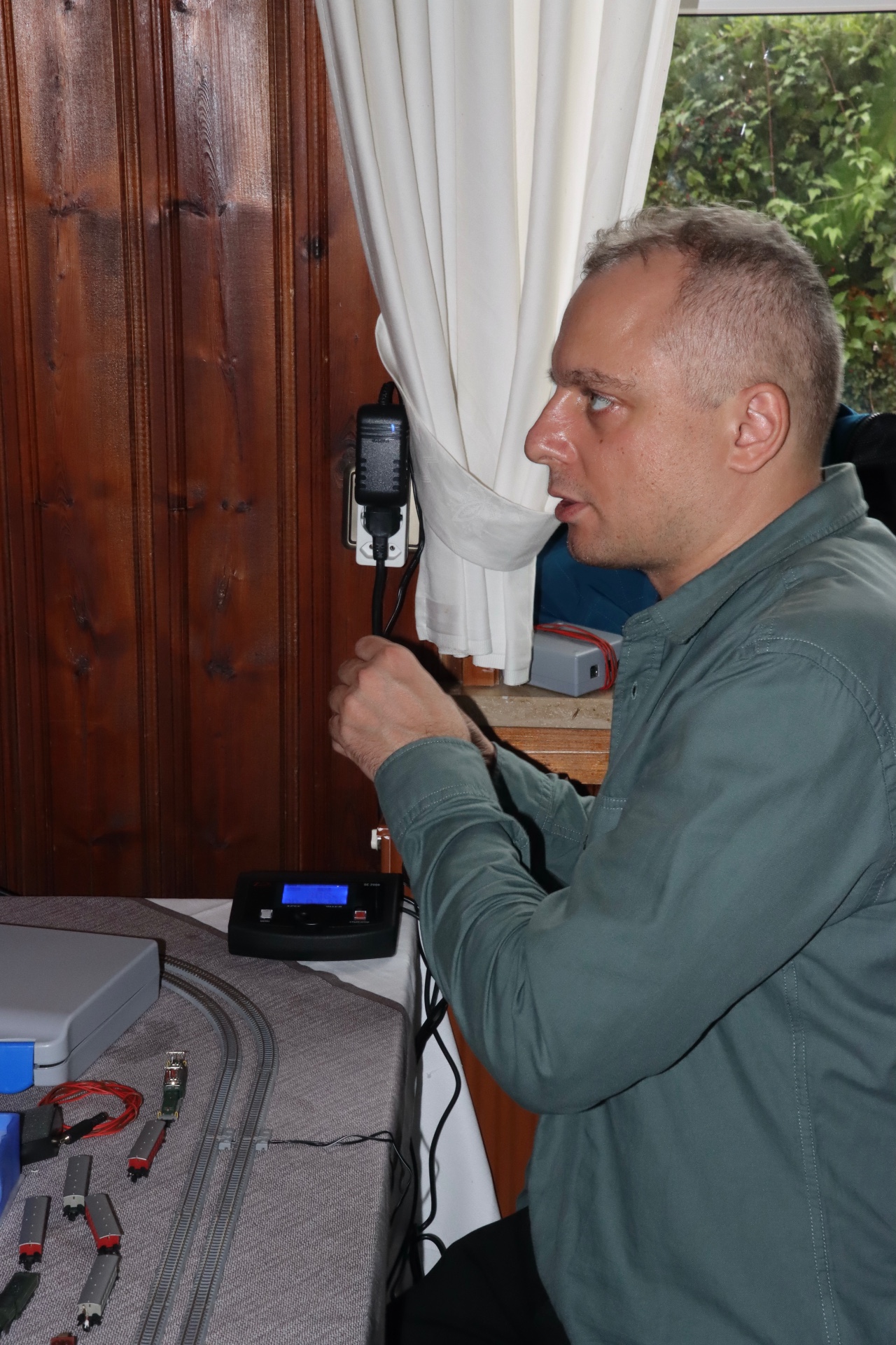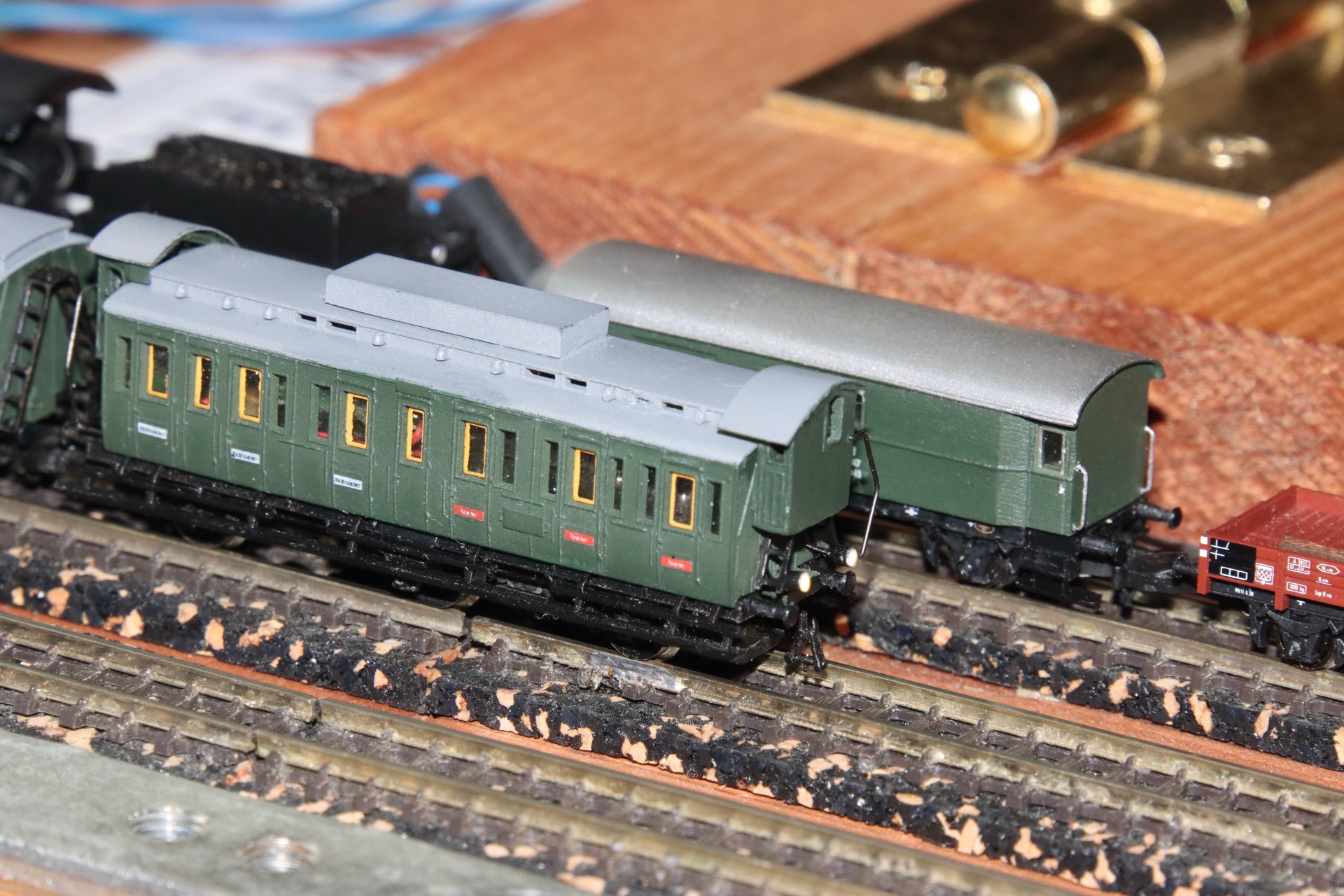So, jetzt aber zu den Details, Neben den schon angekündigten Heribert und seiner Frau haben uns Alex und seine Kinder beehrt. Alex hatte auch ein paar Neuentwicklungen dabei; manches zwar noch als Prototyp aber dennoch beeindruckend! Hagen hatte seine letzten Umbauten am Start: Thomas hatte einen besonderen von Birgit gestalteten Wagen dabei: Für NIcht-Schwaben hier die erklärung: https://de.wikipedia.org/wiki/Auf_de_sc ... _Eisebahne