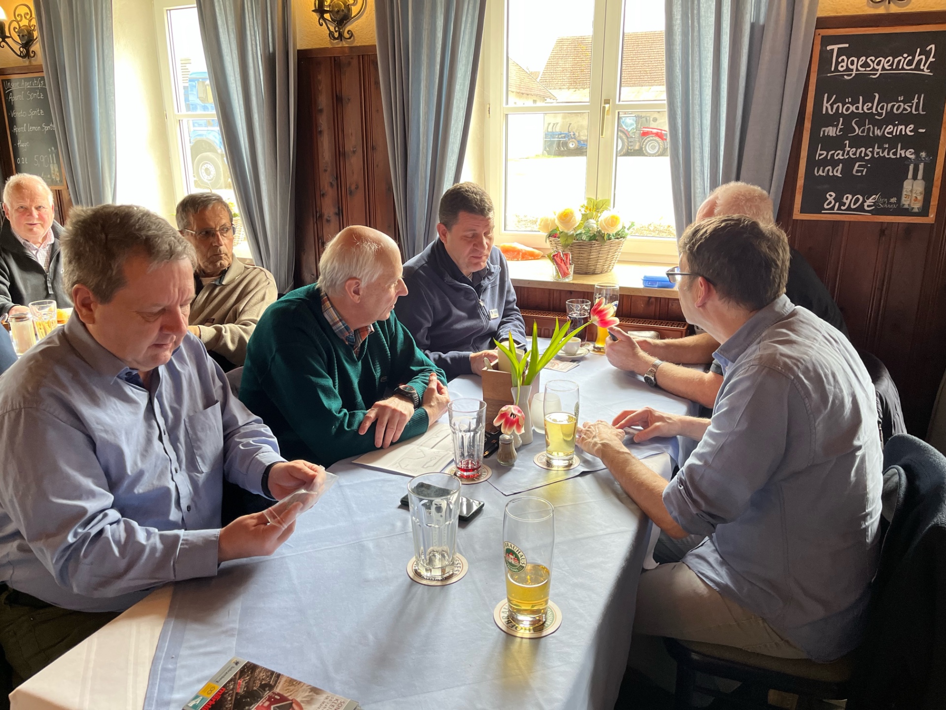 Komme gerade von unserem heutigen Stammtisch zurück. Na ja, wenn man die Bilder betrachtet war es eher ein Stammlokal, es gab keinen Tisch in der Wirtsstube, den wir nicht besetZt haben.