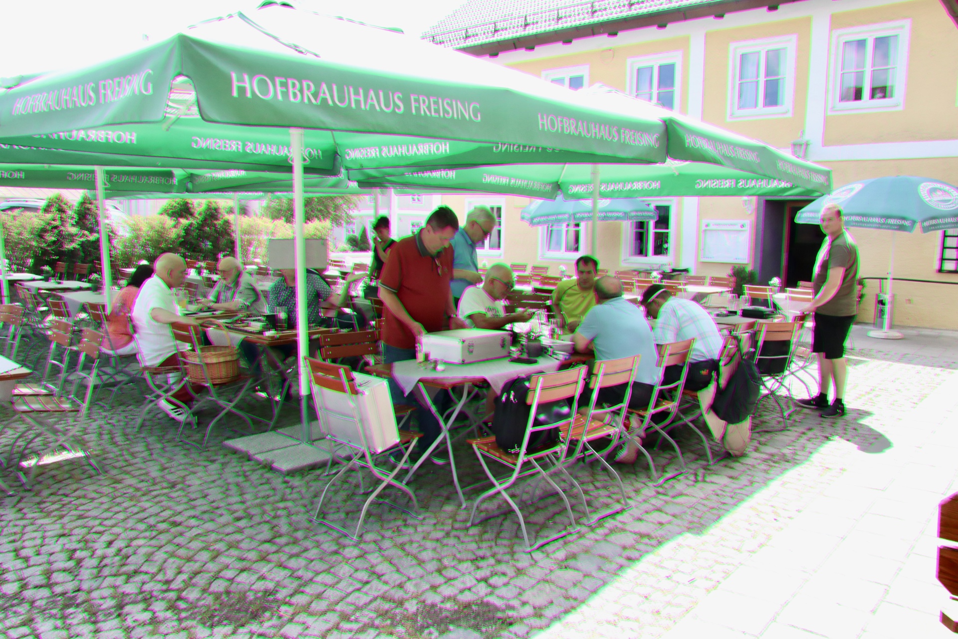 Meine Kamera stand aus einem anderen Versuch auf manuellem Weißabgleich, den ich aber unter den grünen Schirmen nicht gemacht hatte. Da ich keine RAWs gespeichert habe, ist es sehr aufwändig, den Stich zu eliminieren. Wie gesagt sind grüne Bilder besser als keine Bilder. Beim nächsten mal laß ich meine Kamera einfach wieder zuhause.