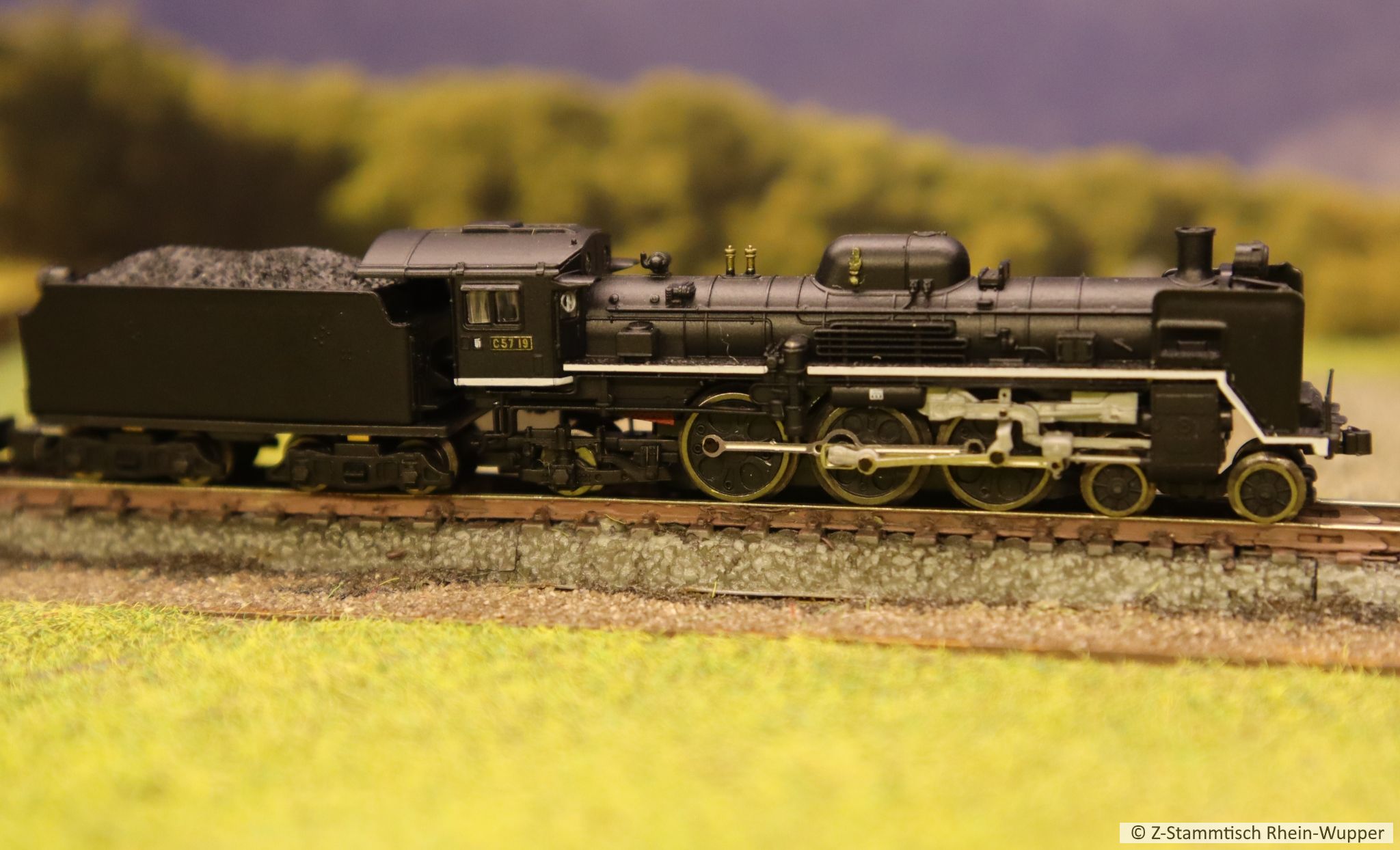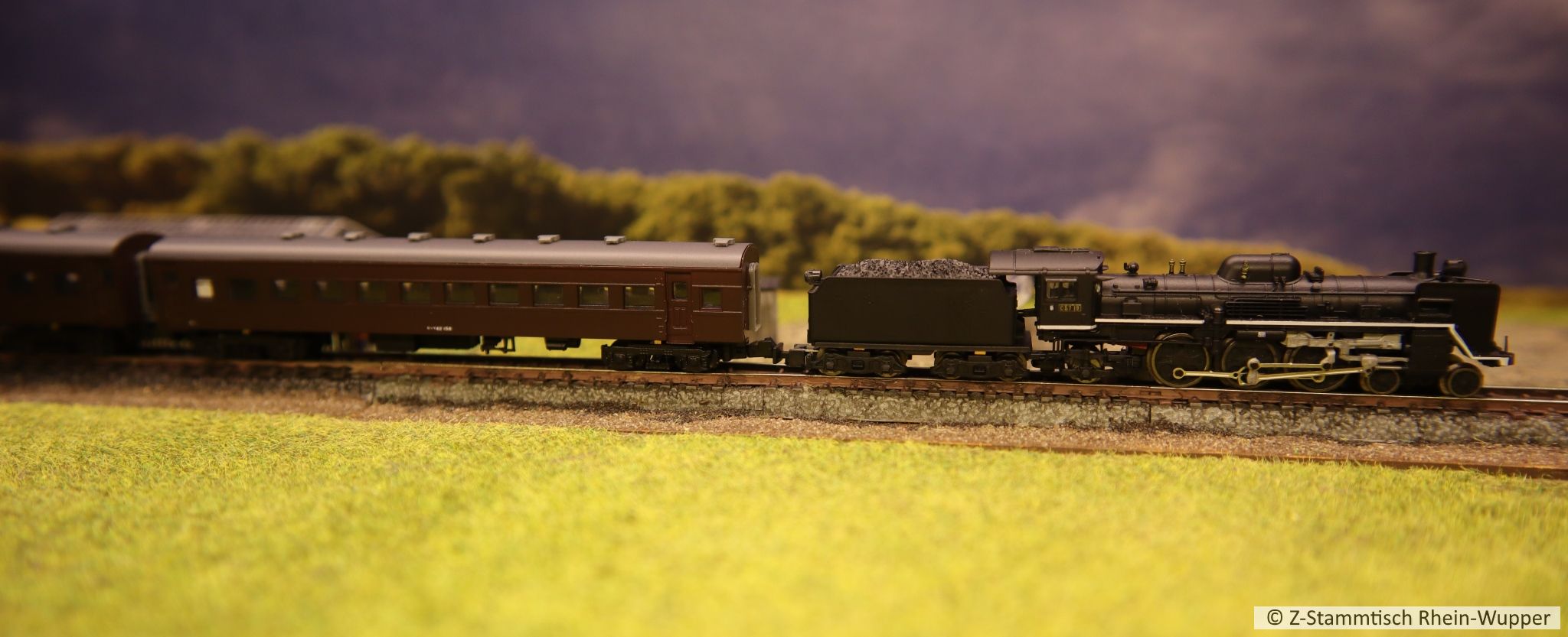 und eine Dampflok C57, ebenfalls der JNR. Auch dieses mit Suha 43 Coachs, allerdings in anderer Farbgebung