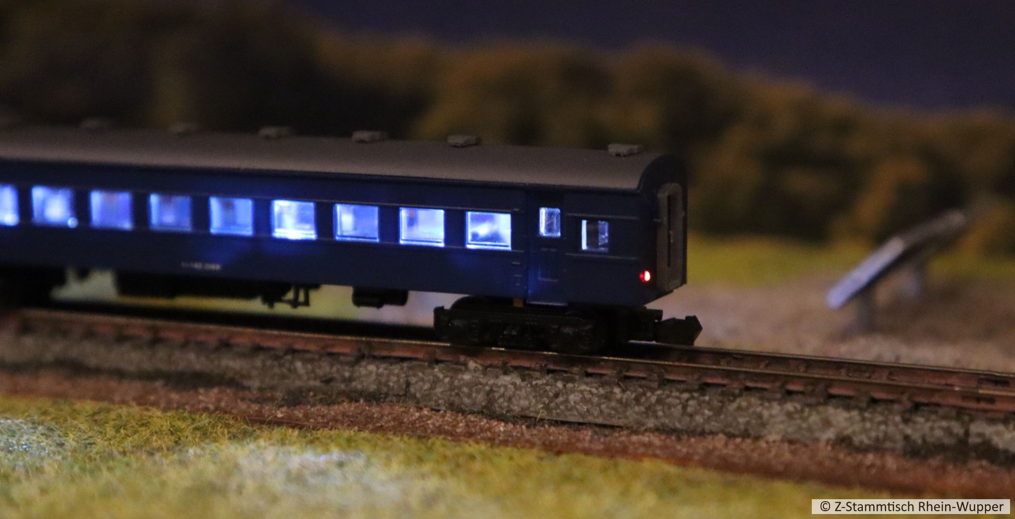 Die Wagons sind Serienmäßig mit Licht und Innenausstattung versehen. (Nein das Licht ist weiß, die Inneneinrichtung ist Blau und Verursacht das bläuliche Licht