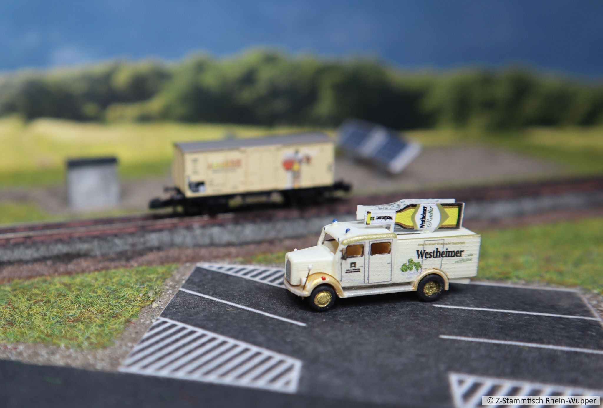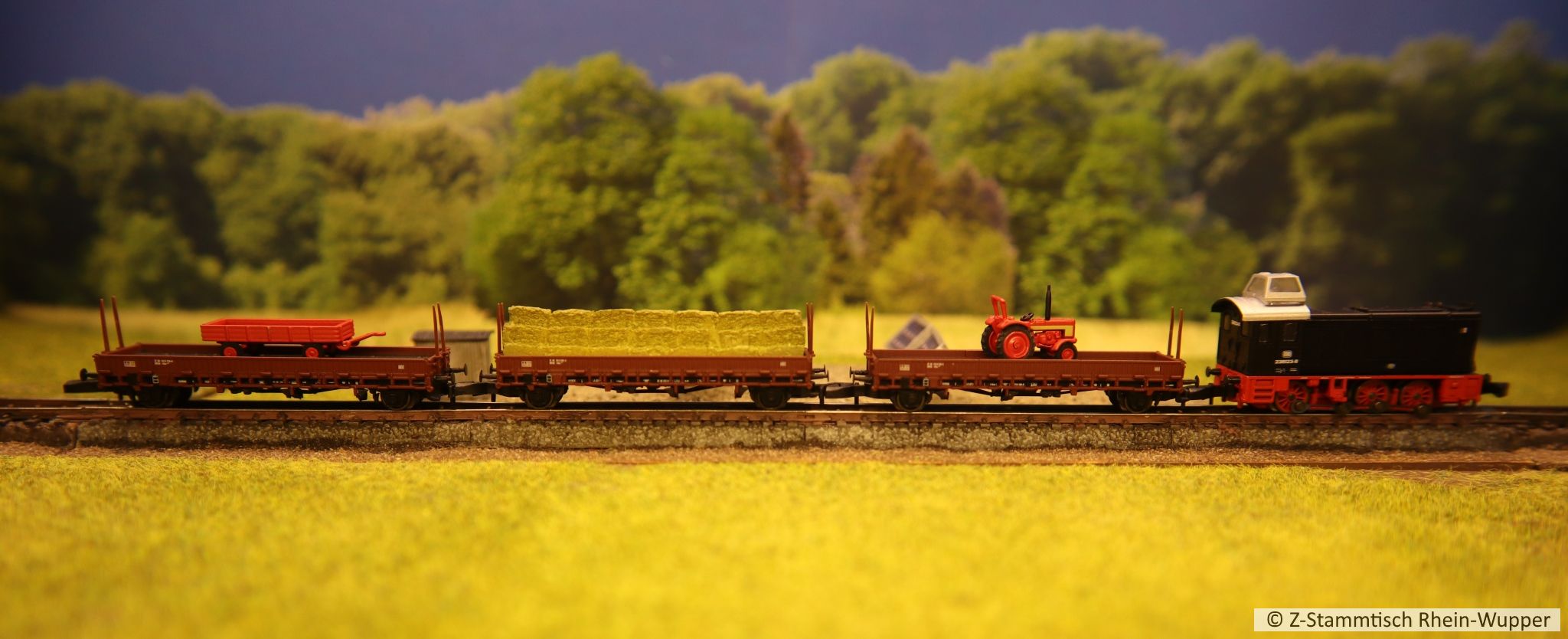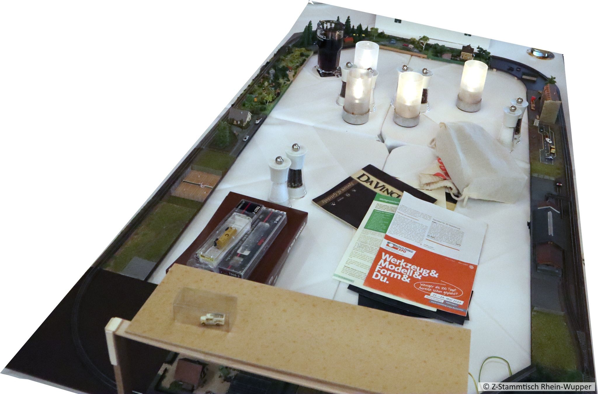 Das Ladegut des Leichten Güterzuges hat sich dann auch noch einmal freundlicher Weise für ein Foto auf einem der Stammtischbrettchen eingefunden