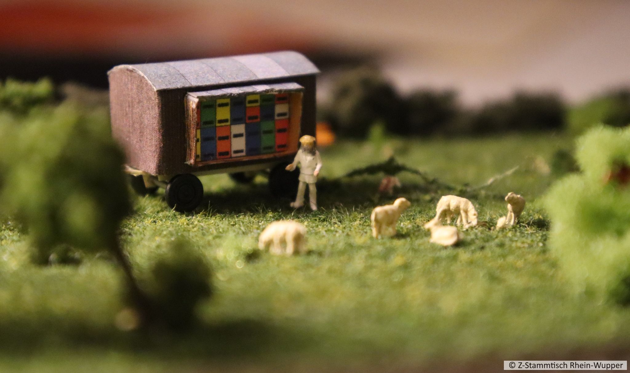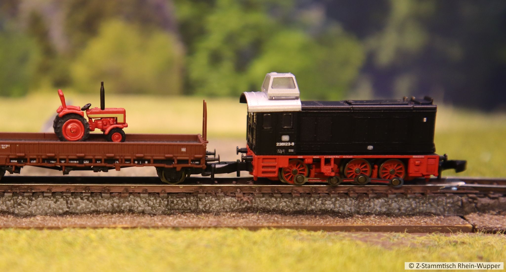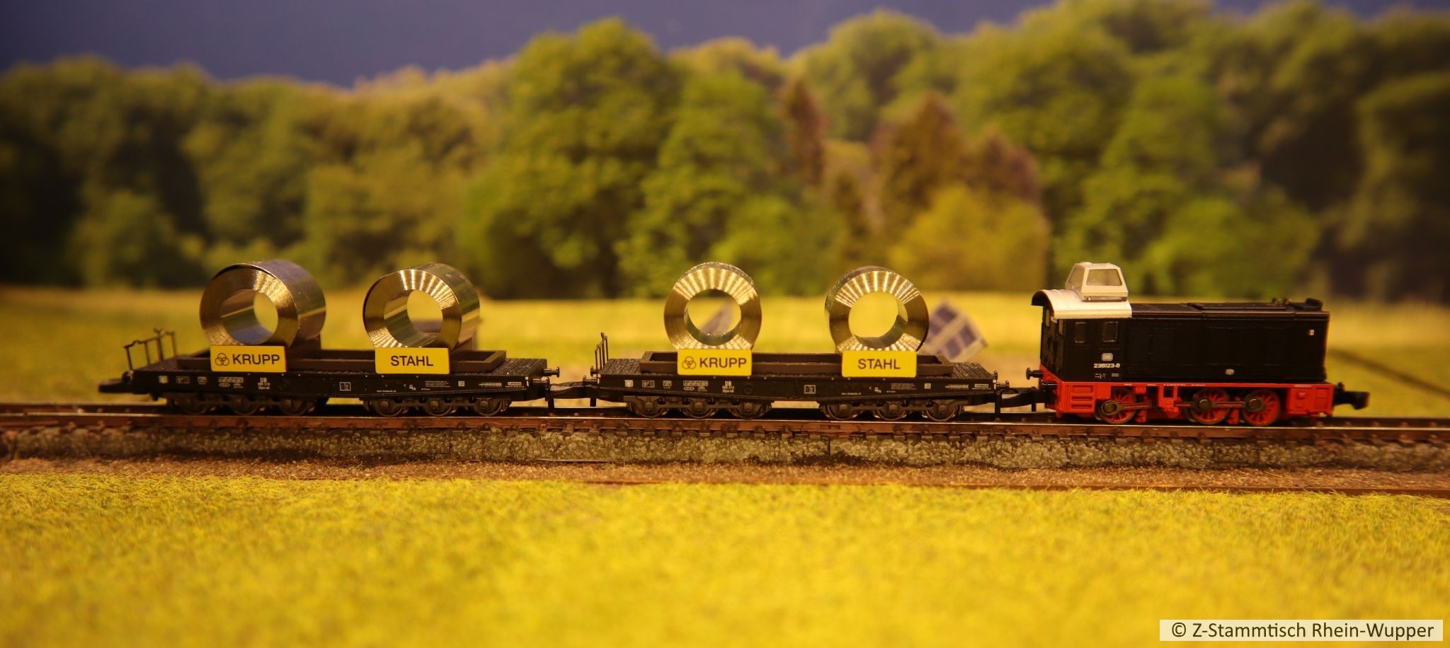 Das Ladegut des Leichten Güterzuges hat sich dann auch noch einmal freundlicher Weise für ein Foto auf einem der Stammtischbrettchen eingefunden