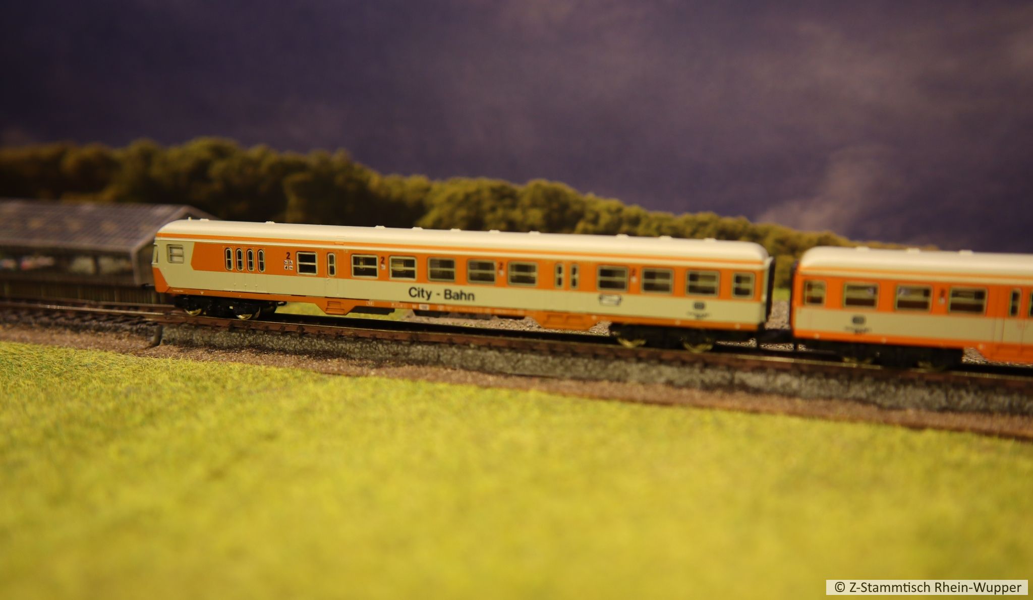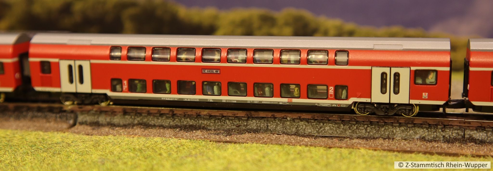 Die neue Insiderlok E41 durfte auch in Wuppertal nicht fehlen. Zwar nicht ganz Epochen gerecht mit Doppelstockwagons unterwegs.