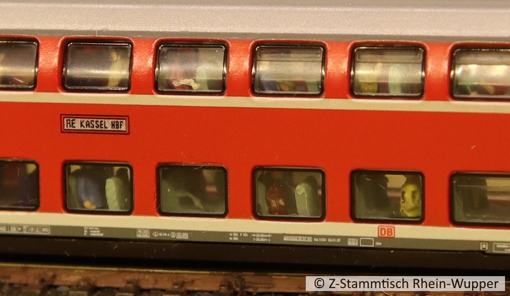 Die Doppelstockwagons wurden mit Licht, Inneneinrichtung und Fahrgästen aufgerüstet
