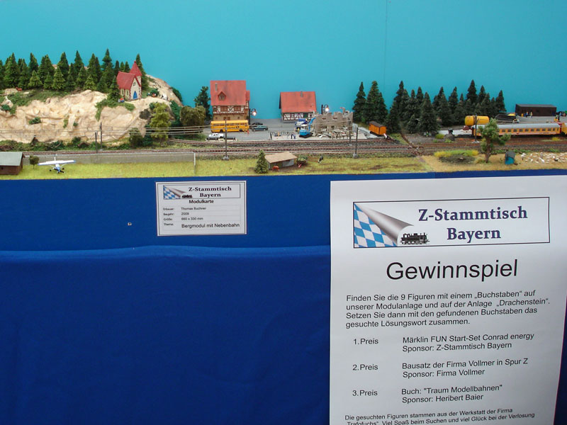 Die 3 Tage vergingen für mich wie im Fluge. Nur an meiner immer rauher werdenden Stimme konnte ich die Stunden an der Anlage abschätzen. Es hat wieder unheimlich viel Spaß gemacht und ich habe mich gefreut, viele sonst nur aus dem Internet bekannte Zetties im Gespräch kennen zu lernen. Besonders interessant jedoch waren die vielen Gespräche mit den H0- und Spur I-Freunden, die erstens von dem Z-Angebot erschlagen waren und tatsächlich fragten, ob es hier auch irgendwo H0-Anlagen gibt und zweitens von der Qualität unserer Z-Anlagen positiv überrascht waren und dieses auch reichlich - manchmal etwas neidvoll - äußerten.