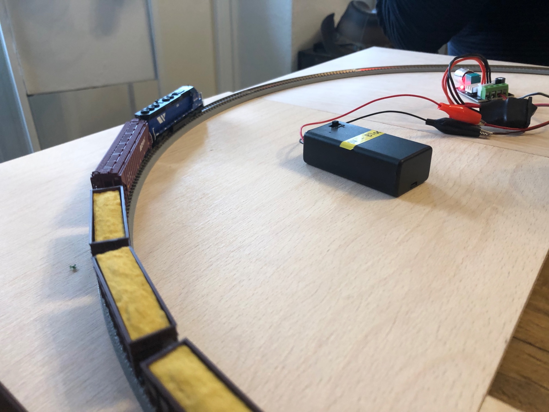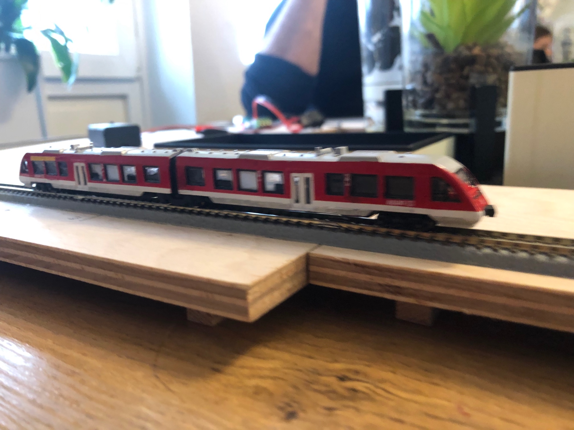 Es hat wieder richtig Spaß gemacht! Peter, Alex und Markus hatten ihre Stammtischbrettchen mitgebracht! Mit dem 9V Batterie Regler von Peter konnten wir jetzt endlich auch mal was fahren lassen!