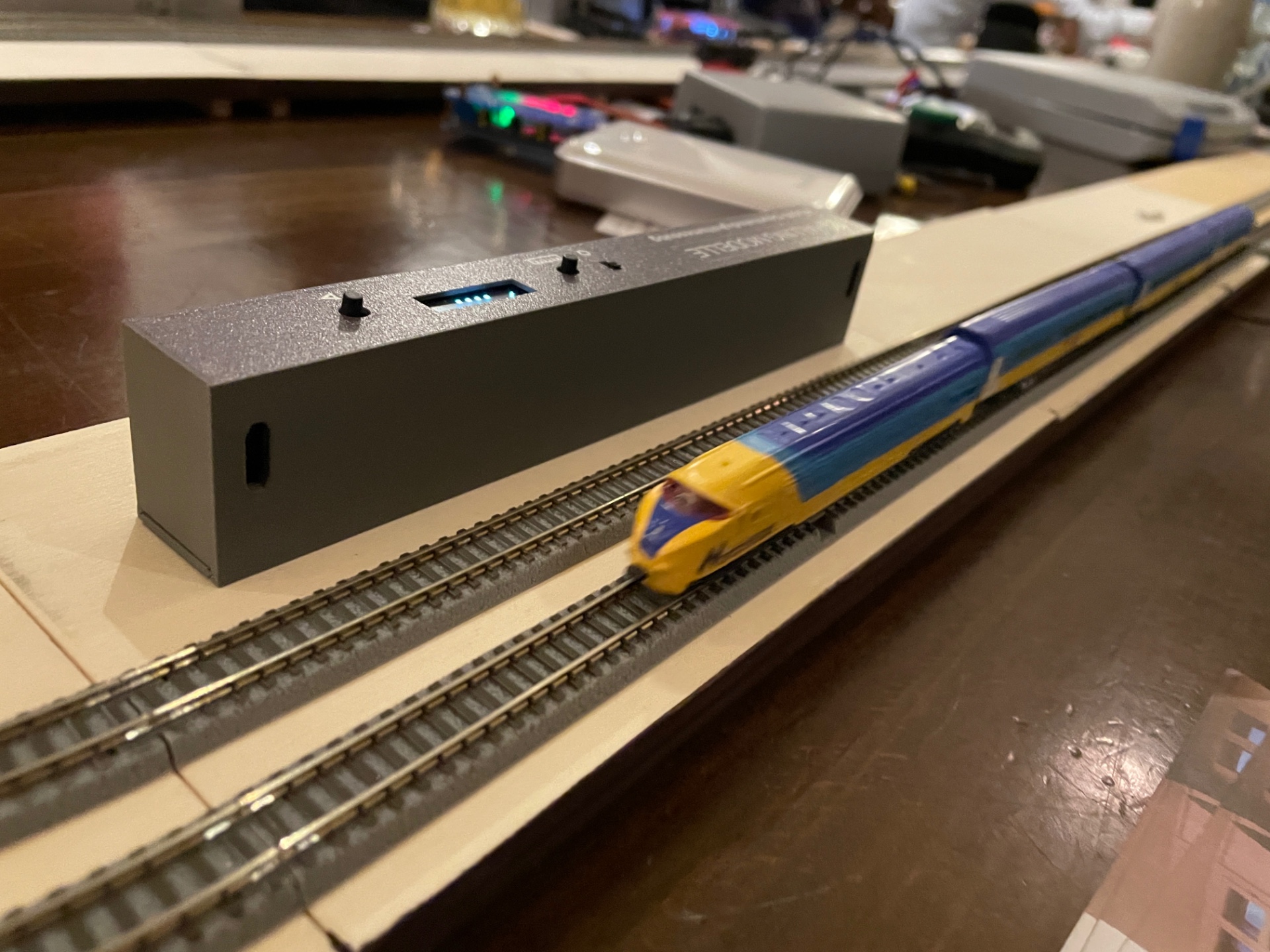 Da flackert im Betrieb nichts, ein anschließbarer (mitgelieferter) Pufferkondensator sorgt dafür - auch für langes Nachleuchten. Die Helligkeit ist mit einem Poti einstellbar. Ich setze die analogen Platinen im Digitalbetrieb ein, Einspeisung 12 V DC in die Gleisbox / Steuerung. Somit irgendwas um die 10,8V eff DCC am Gleis.