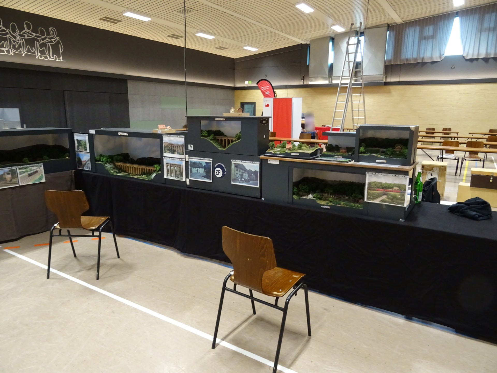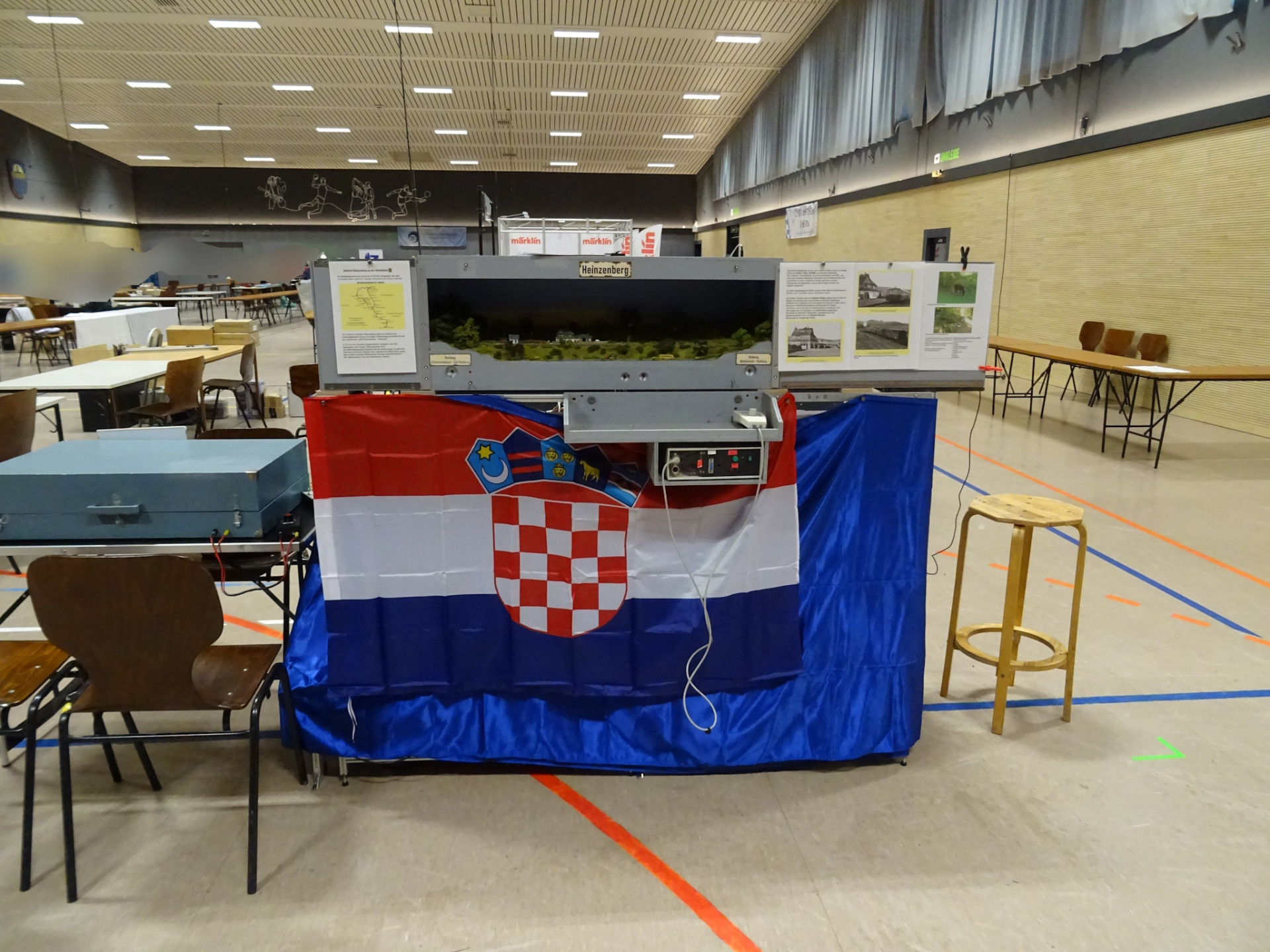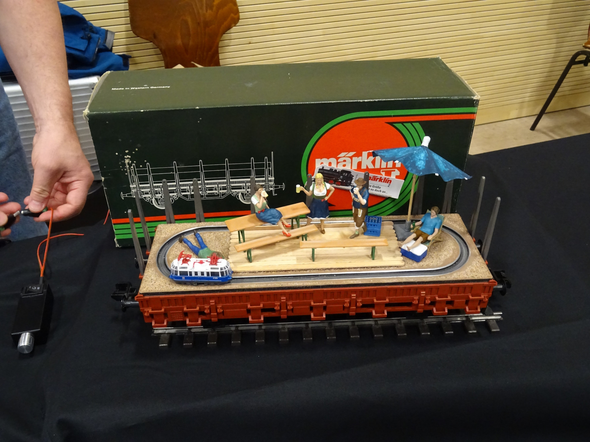 Und selbstverständlich ist Märklin auch da. Neben der Messeanlage eine gut gefüllte Vitrine