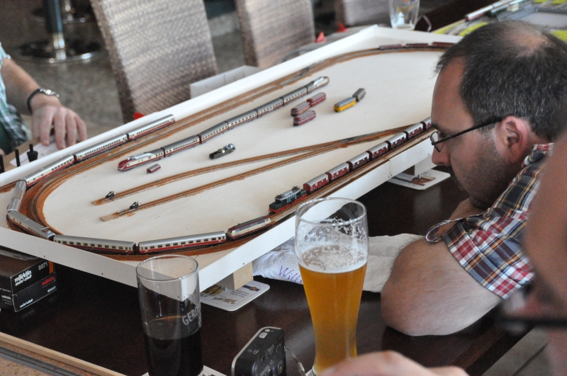war fahrbereit. Was soll ich noch sagen bald fuhren die zusammengestellten Züge über die Testkreise. Natürlich brachte Gunnar, der ja Amerika-Fan