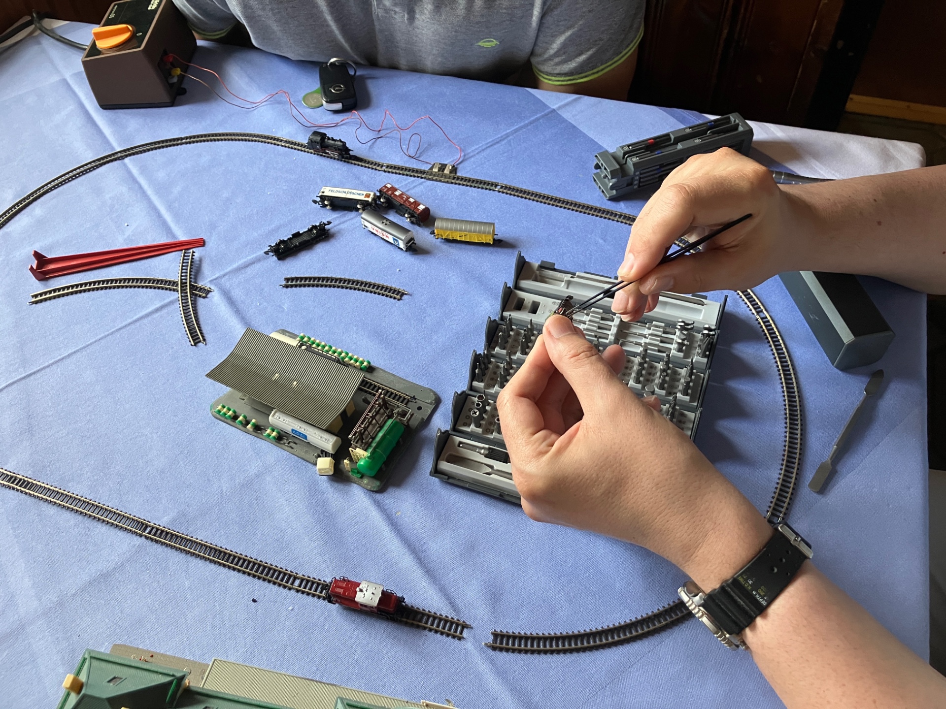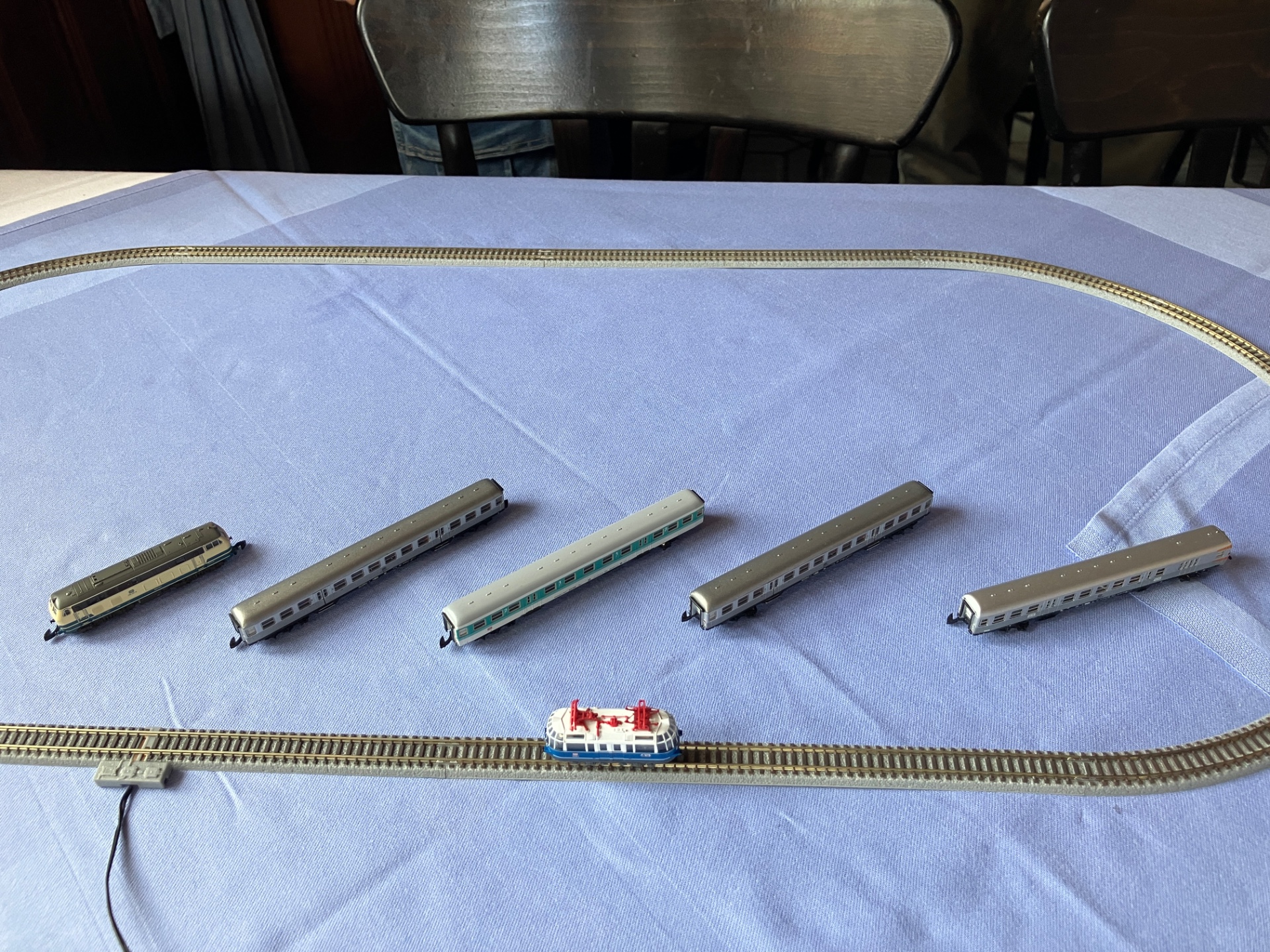 Auf dem Rückweg war ich noch in einem nahegelegenen Modellbahnladen, der viel Zubehör für eine bewohnbare Ausgestaltung der Anlage anbietet. Meine Tochter braucht eine Erweiterung für ihre vorhandene Startpackung. Und ich noch was fürs Wendesternuntergestell.