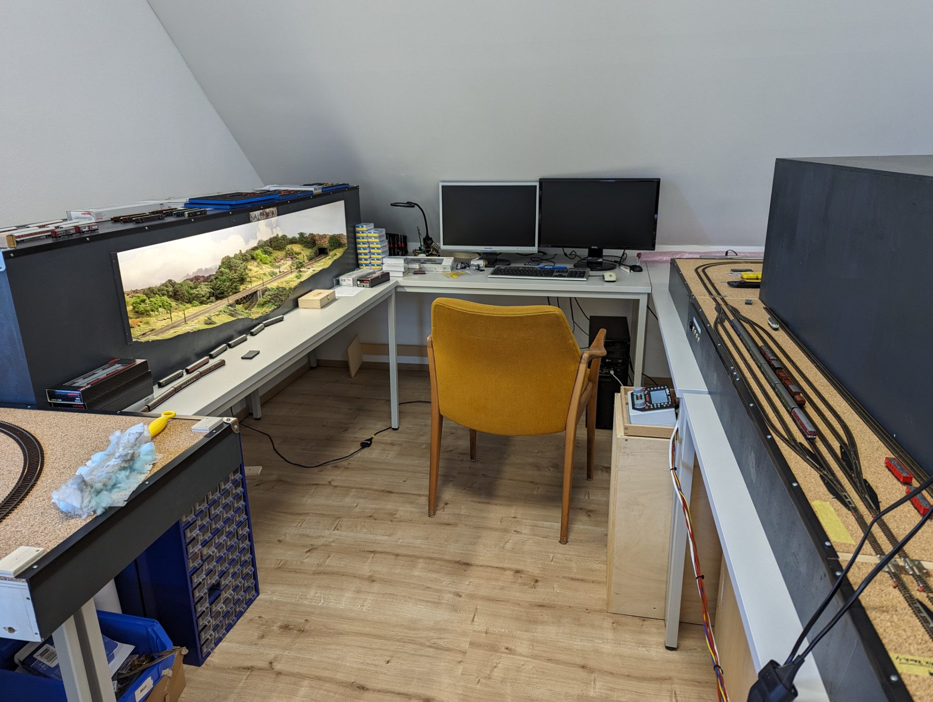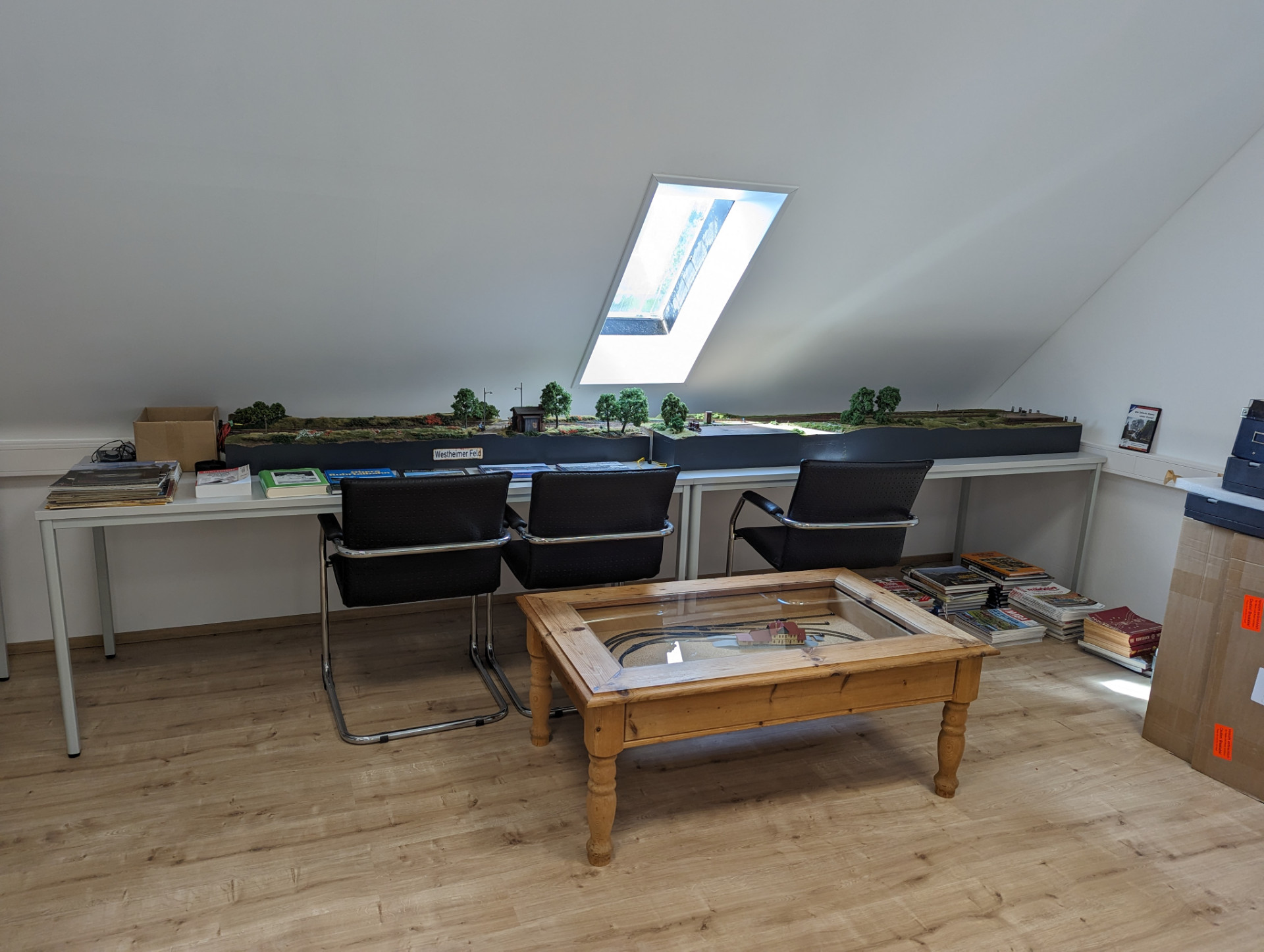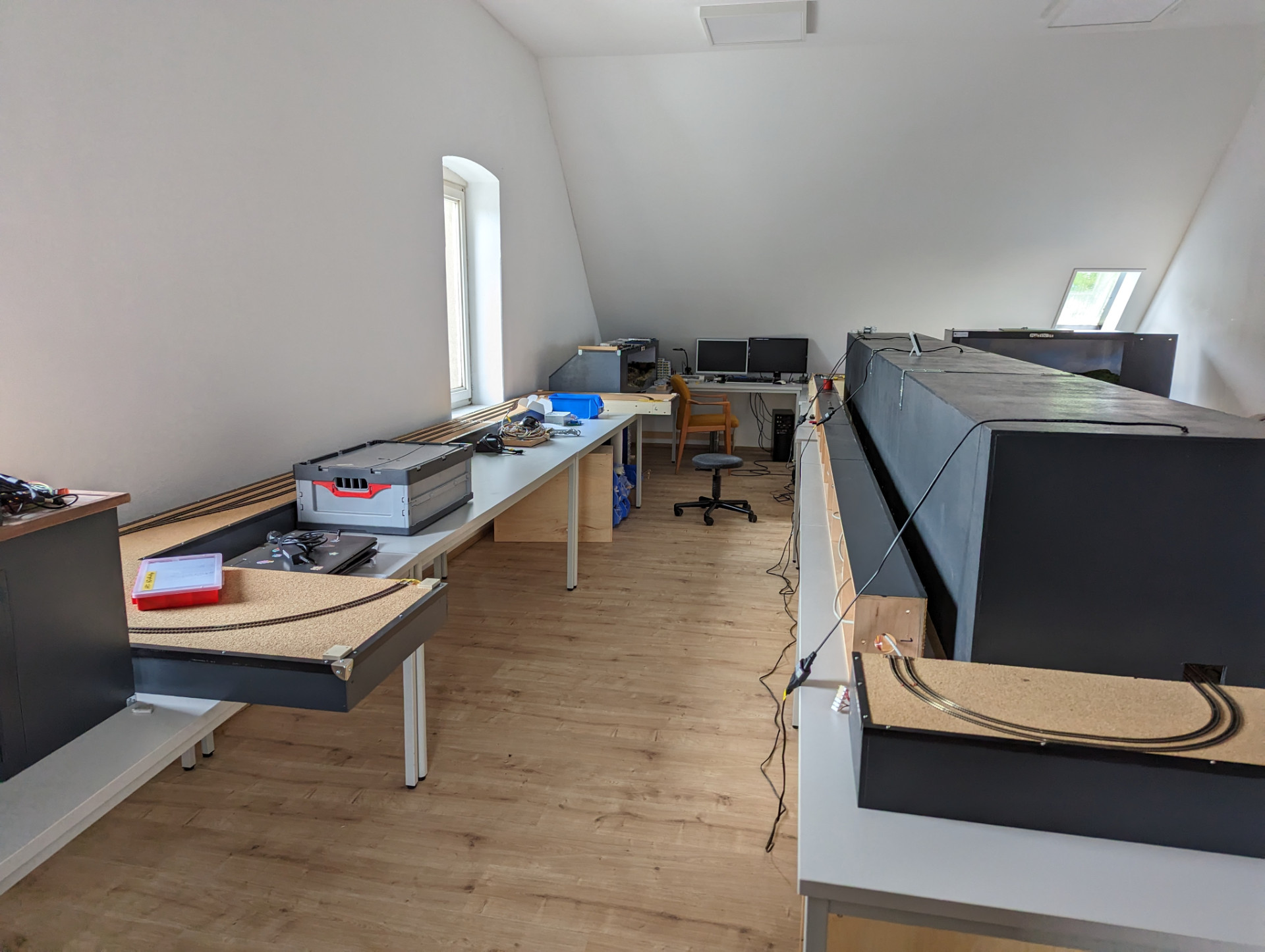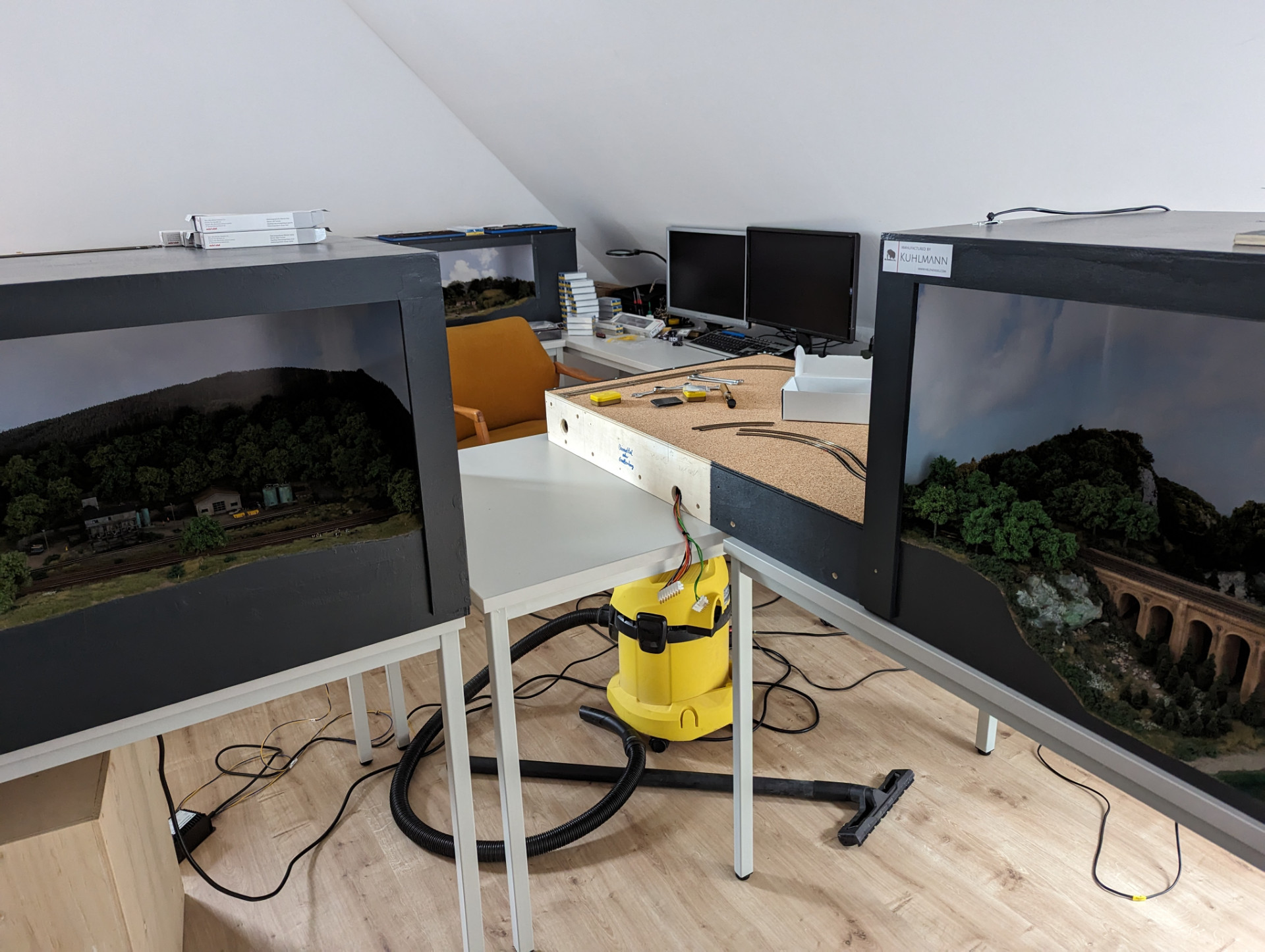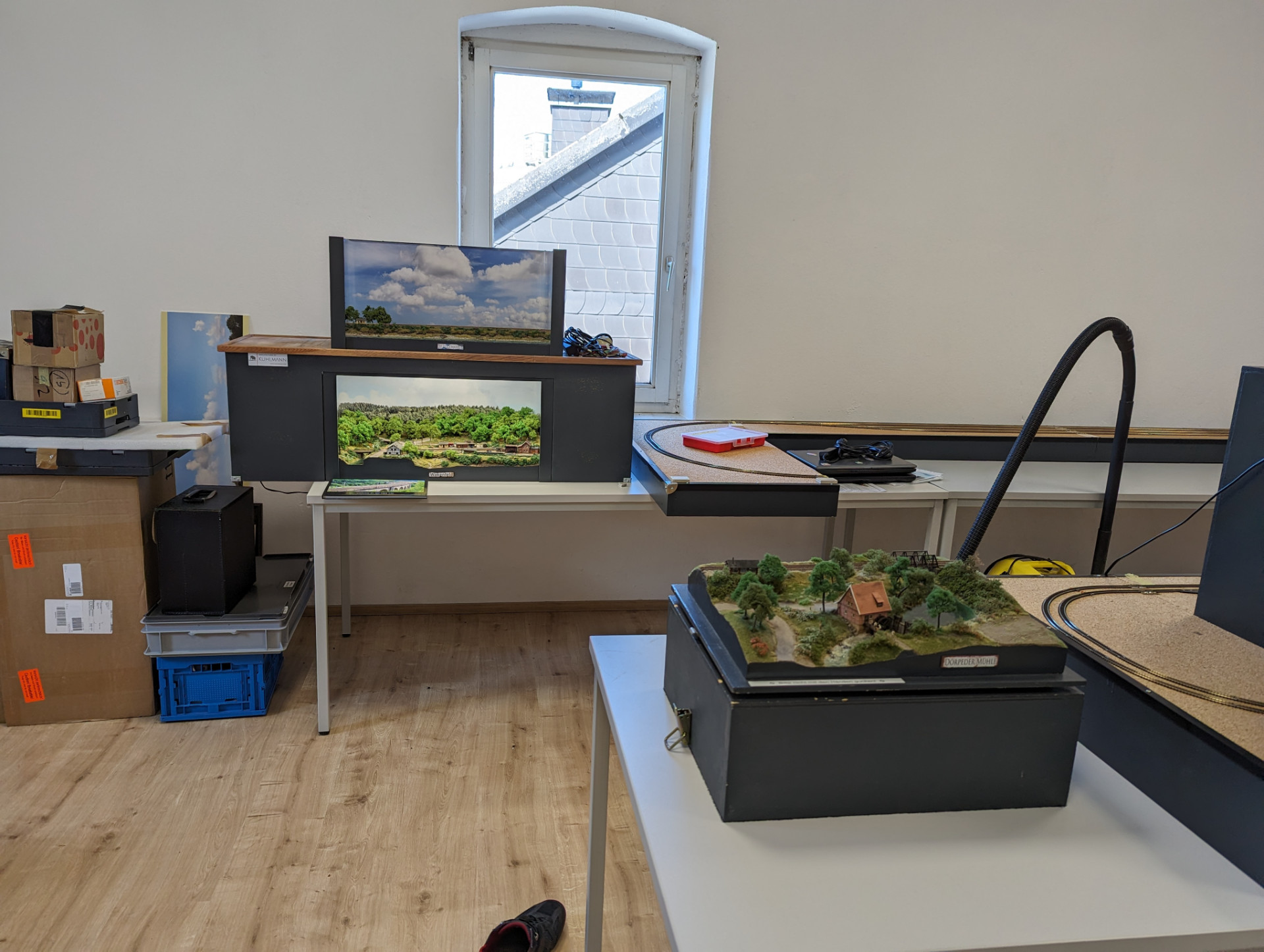 Raum wieder halbwegs begehbar und Schattenbahn hinterm Kieswerk getestet.