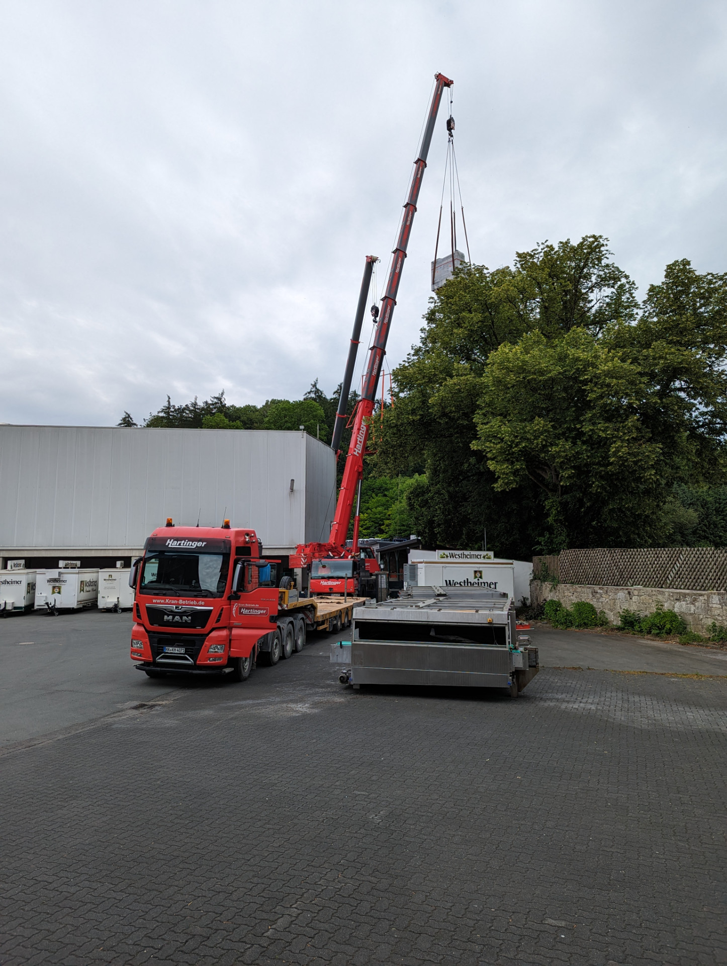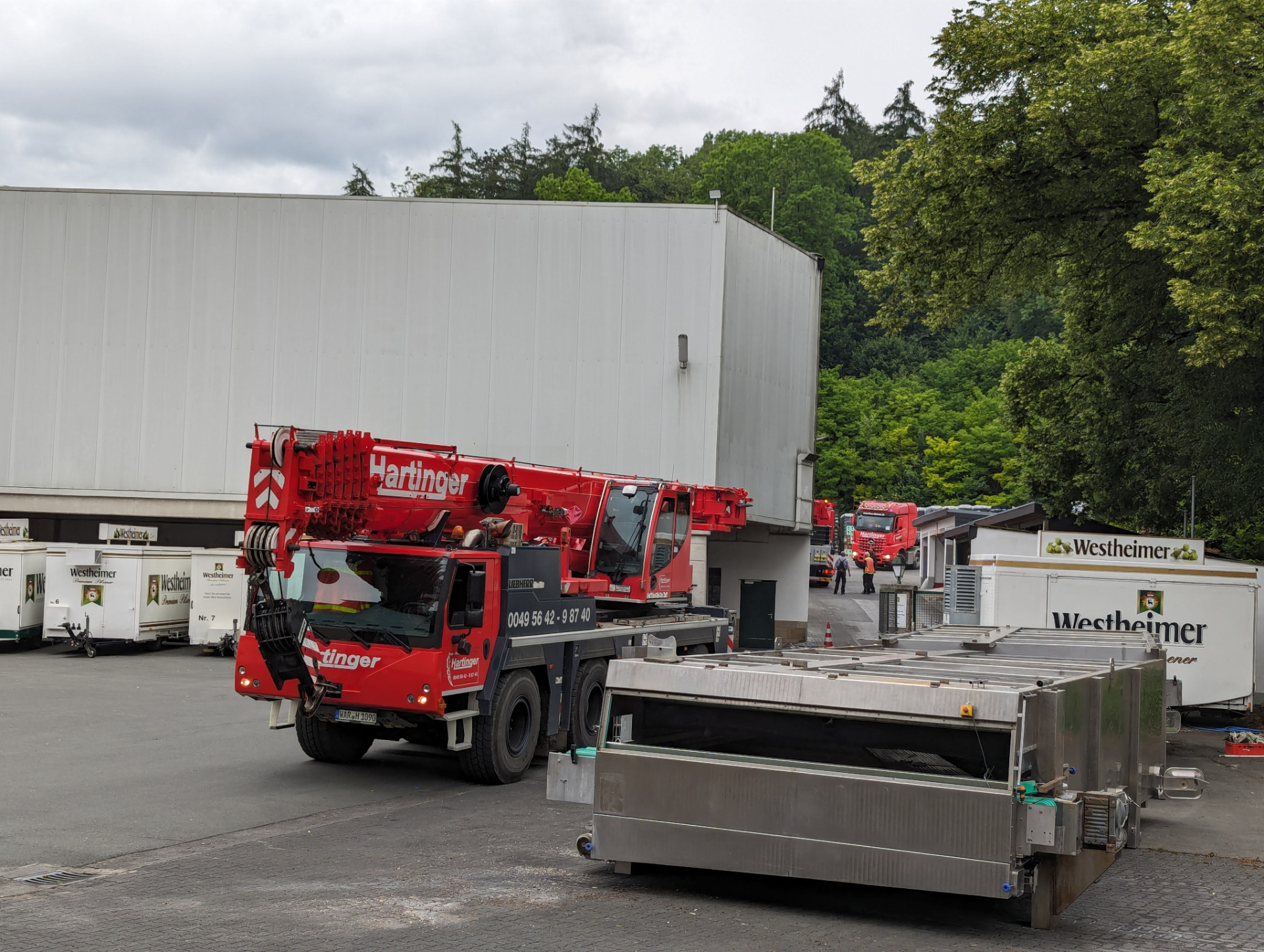 Die Spülmaschine und der Etikettierer aus Allersheim sollen in Westheim verbaut werden. Vorher müssen die alten Maschinen raus. Der Kran war für 6 Uhr angemeldet, ist aber noch nicht da. Umbau dieses Mal ohne meinen Vater. Er hat sich endgültig damit abgefunden, dass man mit 75 Jahren solche Attacken nicht mehr fahren muss.