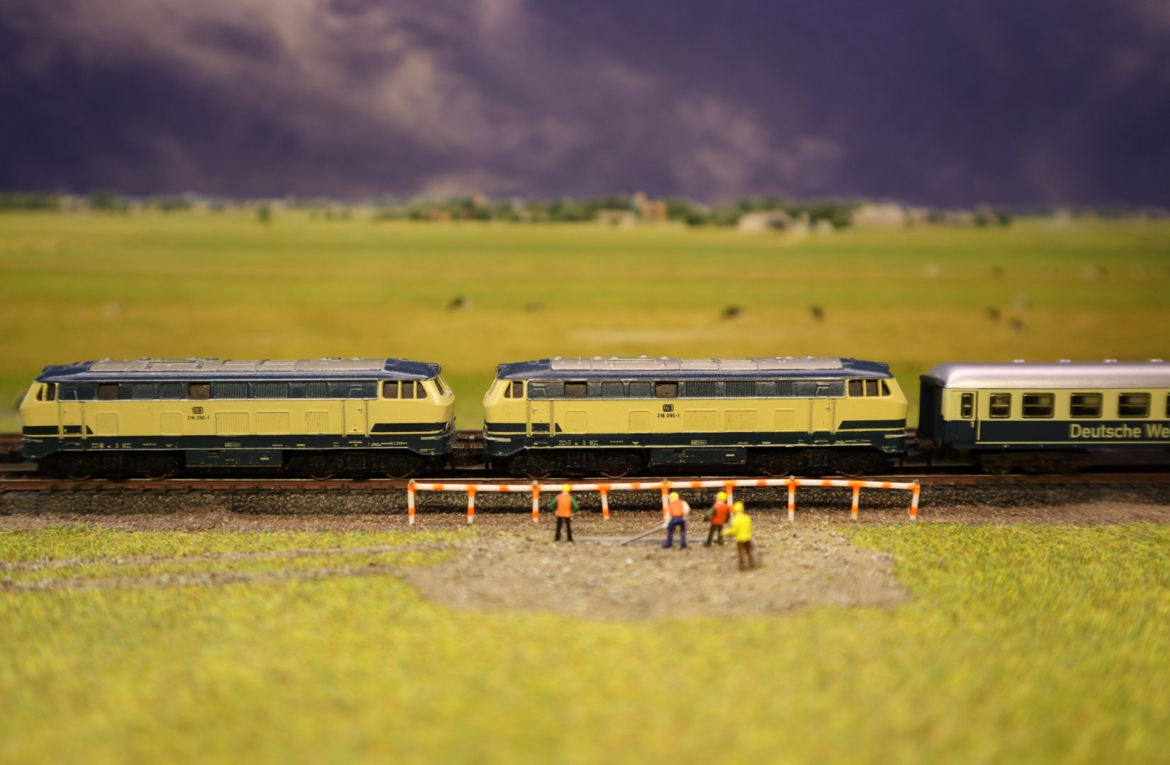 Zum Abschluss noch eine Doppeltraktion BR 216 mit einigen Wagons